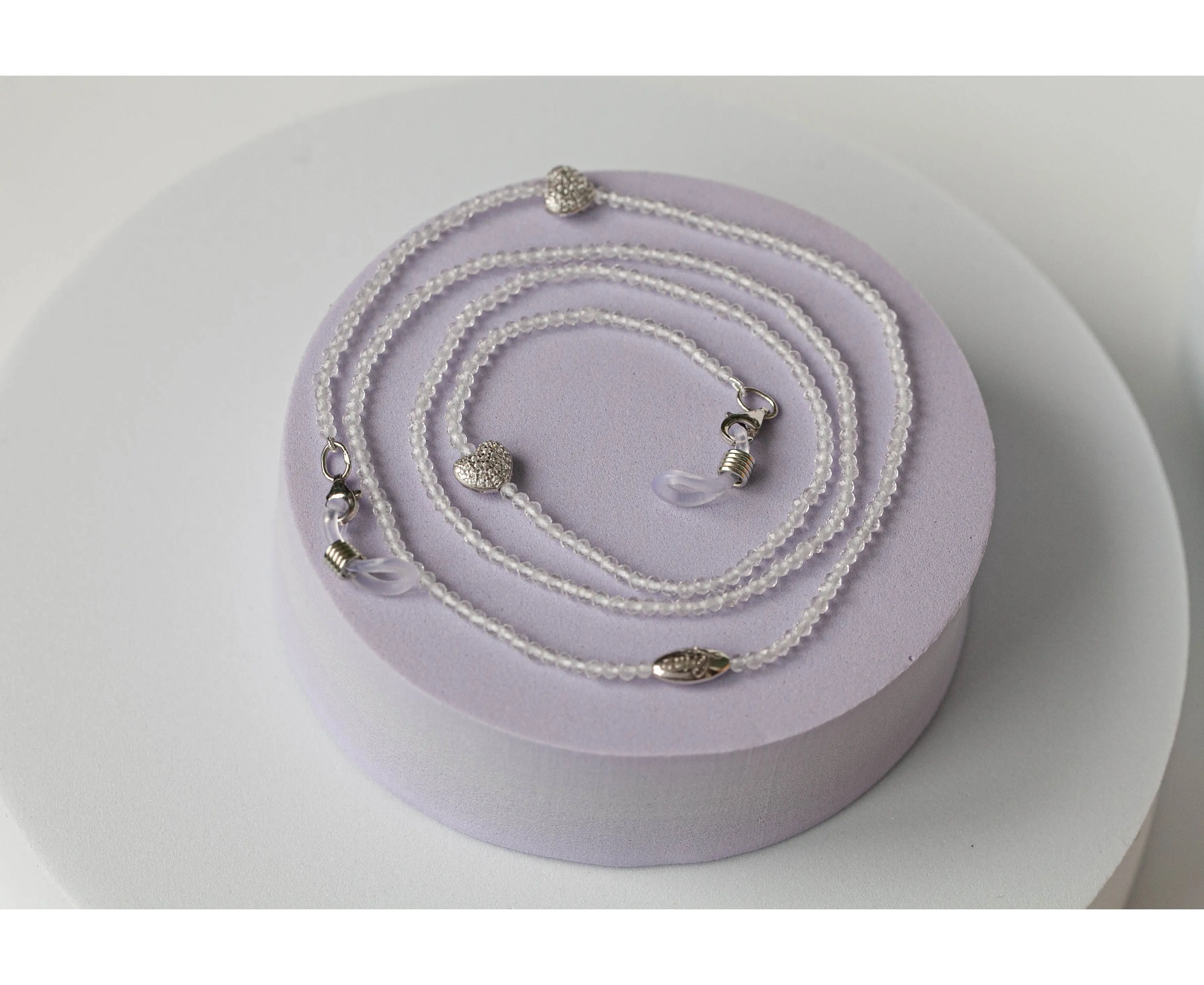 Аксессуар для очков в серебре из горного хрусталя с серебряными сердцами (Хрусталь 3 мм Ag 925 1,5 гр)