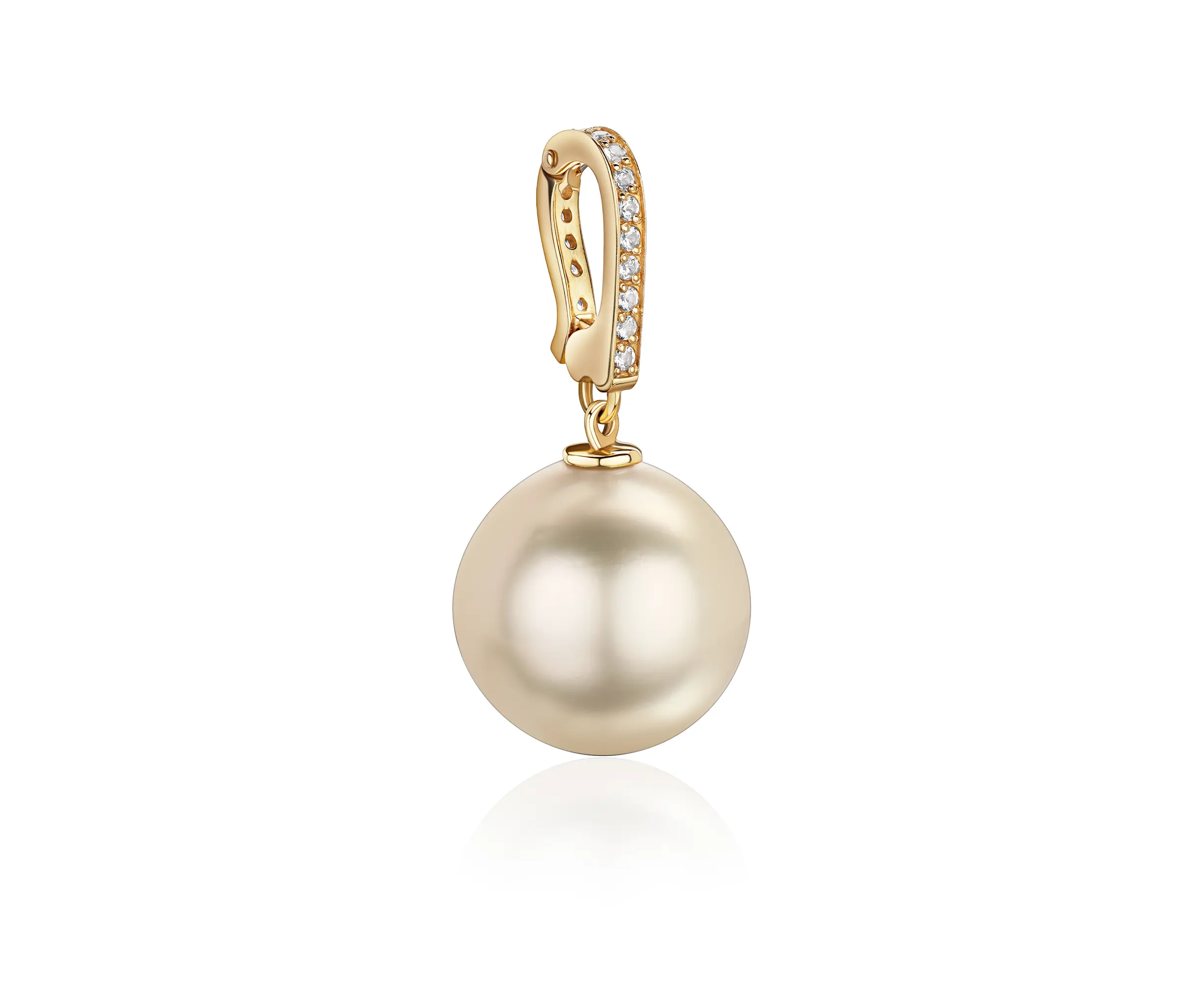 Подвеска с белым жемчугом 12 мм, желтое золото с бесцветными сапфирами (жемчуг 11,9 мм, Au - 1,01 гр, 16 бесцв.сапфиров)