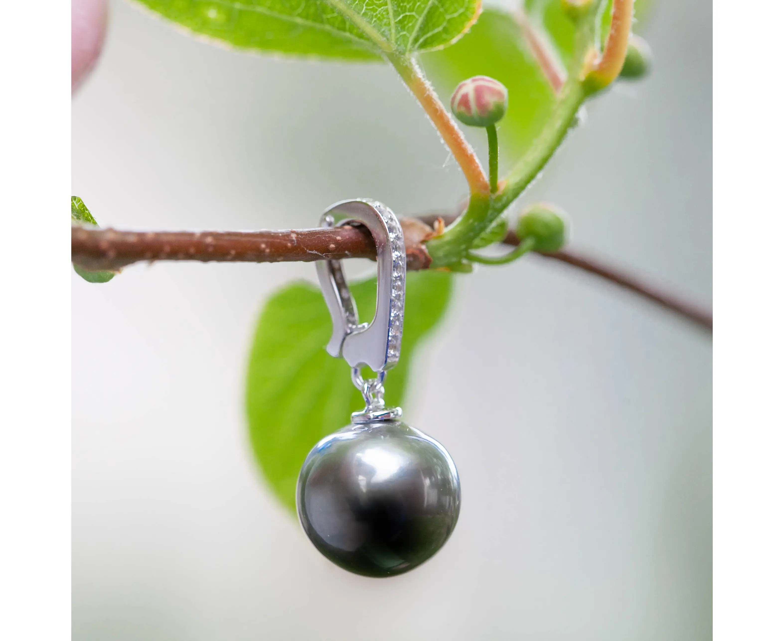 Подвеска с жемчугом Таити, золото, сапфиры (жемчуг Таити 12,6 мм, Au - 1.01 гр, 16 бесцв.сапфиров)
