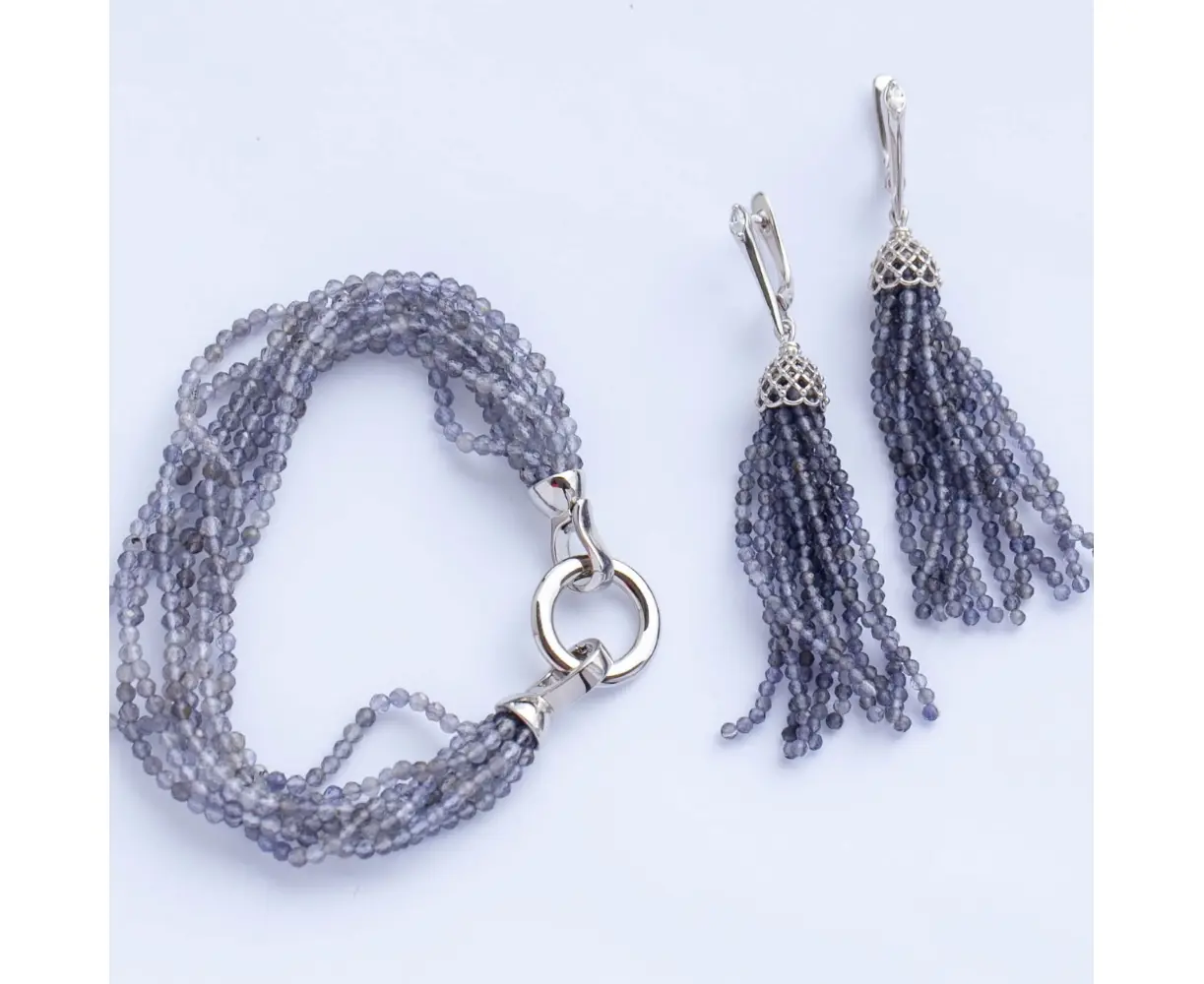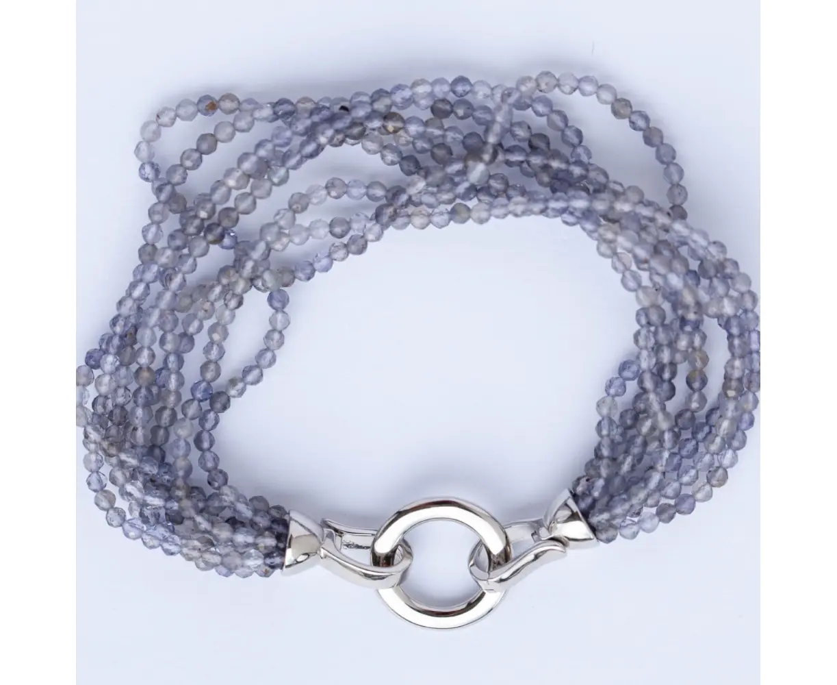 Браслет в серебре из иолита 8 нитей (иолит юв.огранки 3 мм)