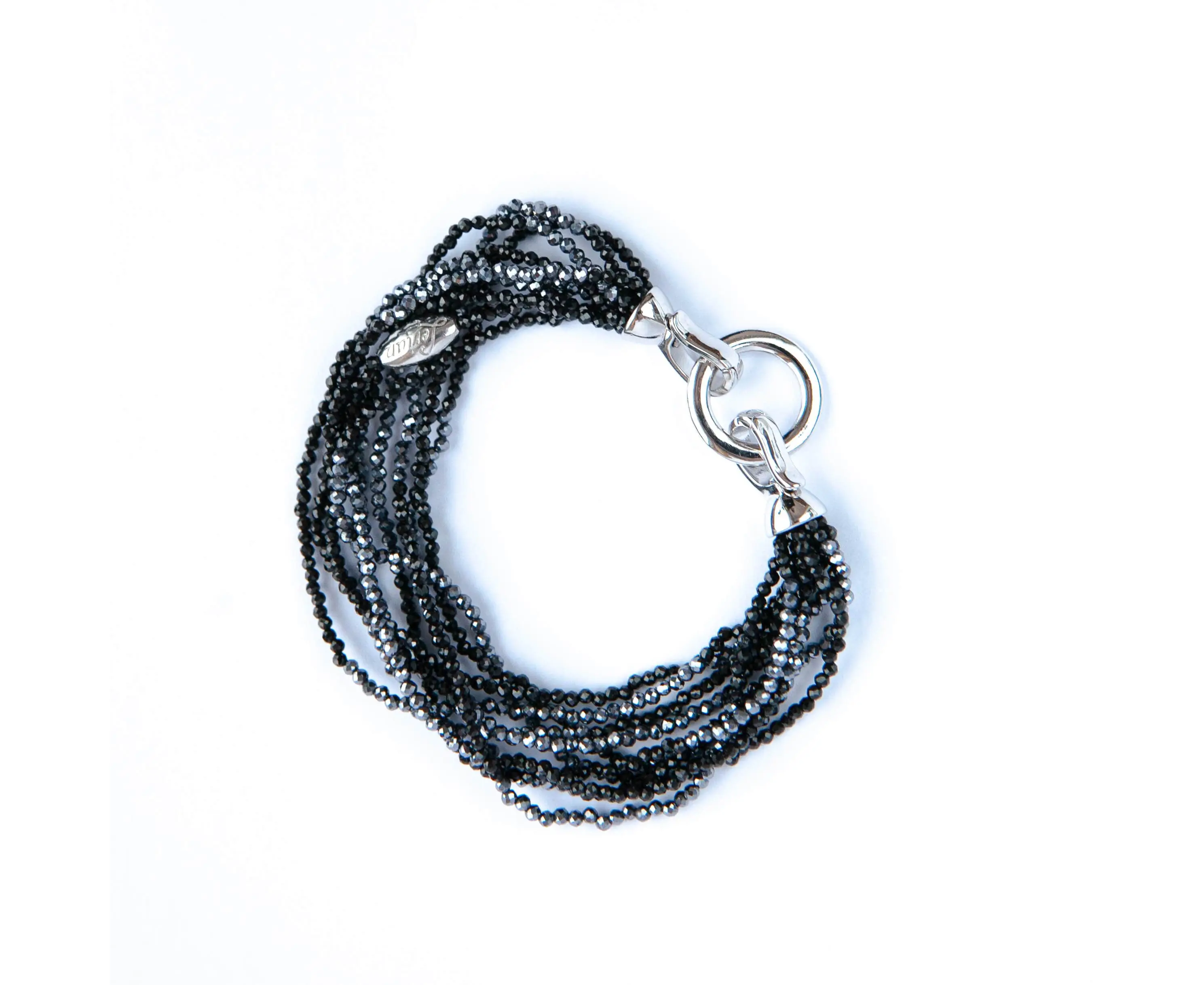 Браслет в серебре из 8 нитей шпинели и терагерца (шпинель и терагерц юв.огранки 2 мм)