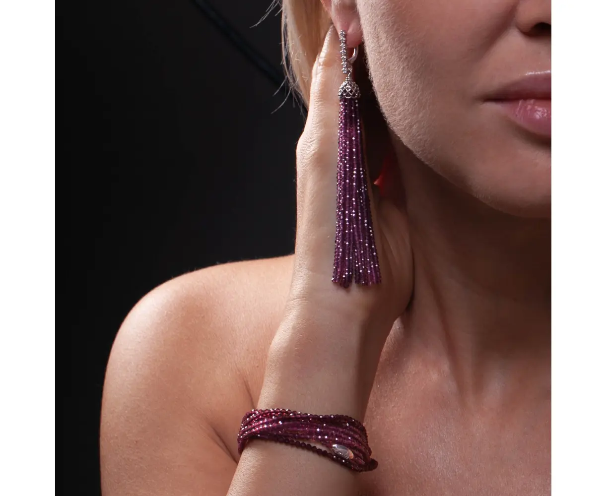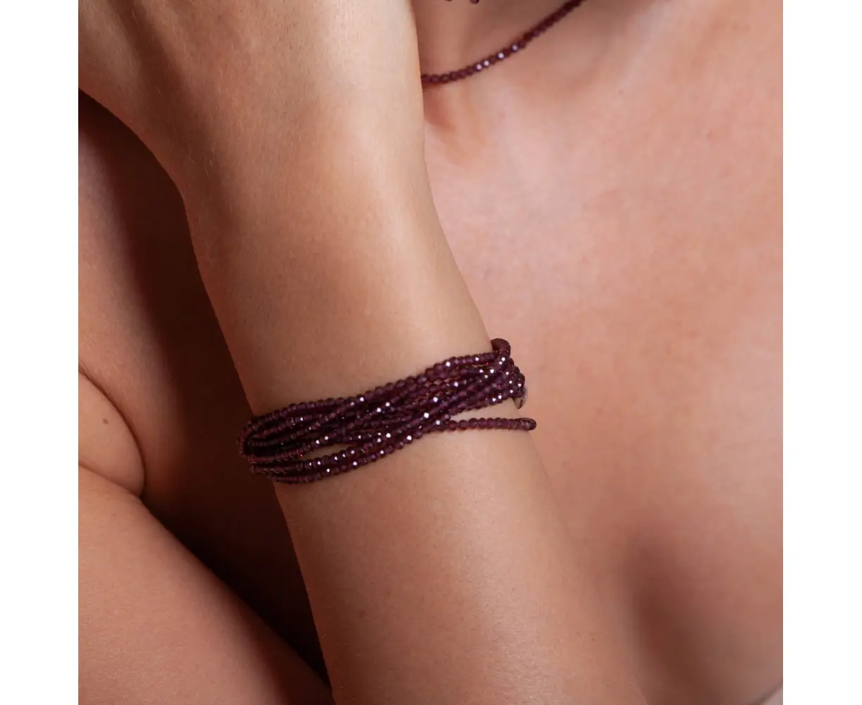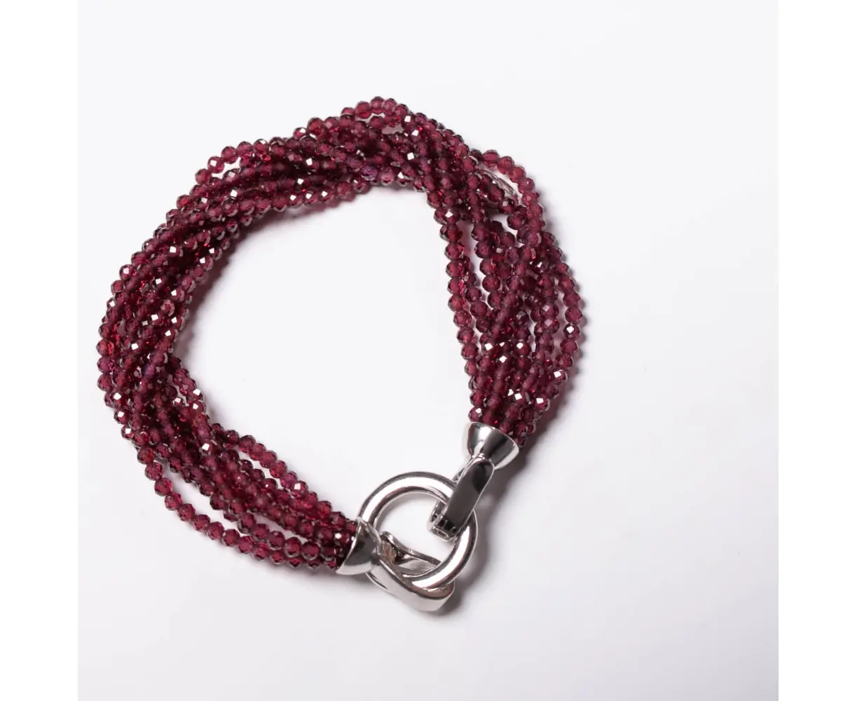 Браслет в ювелирном сплаве из граната юв.огранки 3 мм -8 нитей (гранат 3,0)