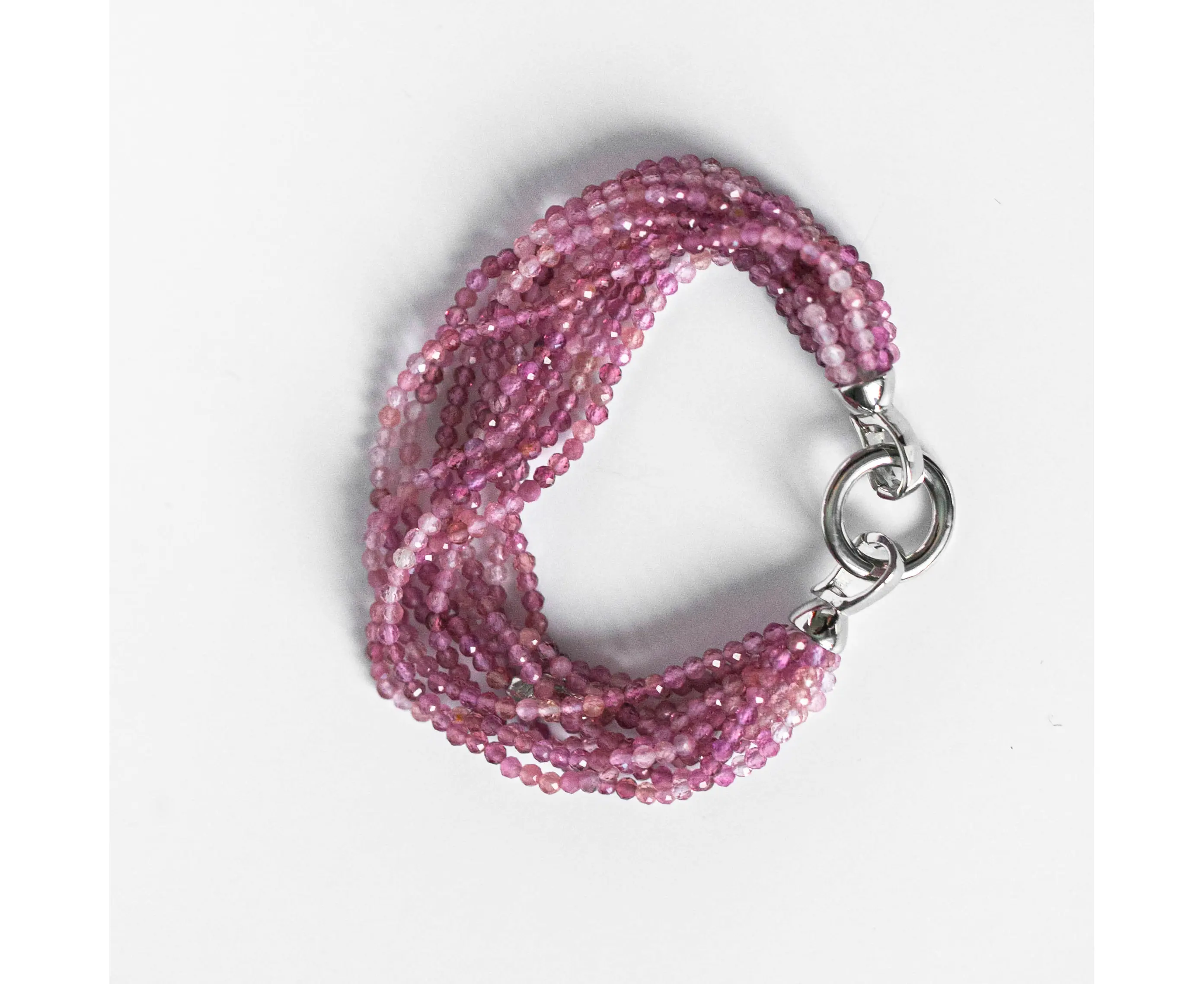 Многорядный браслет из розового турмалина (Турмалин юв.огранки 2 мм)