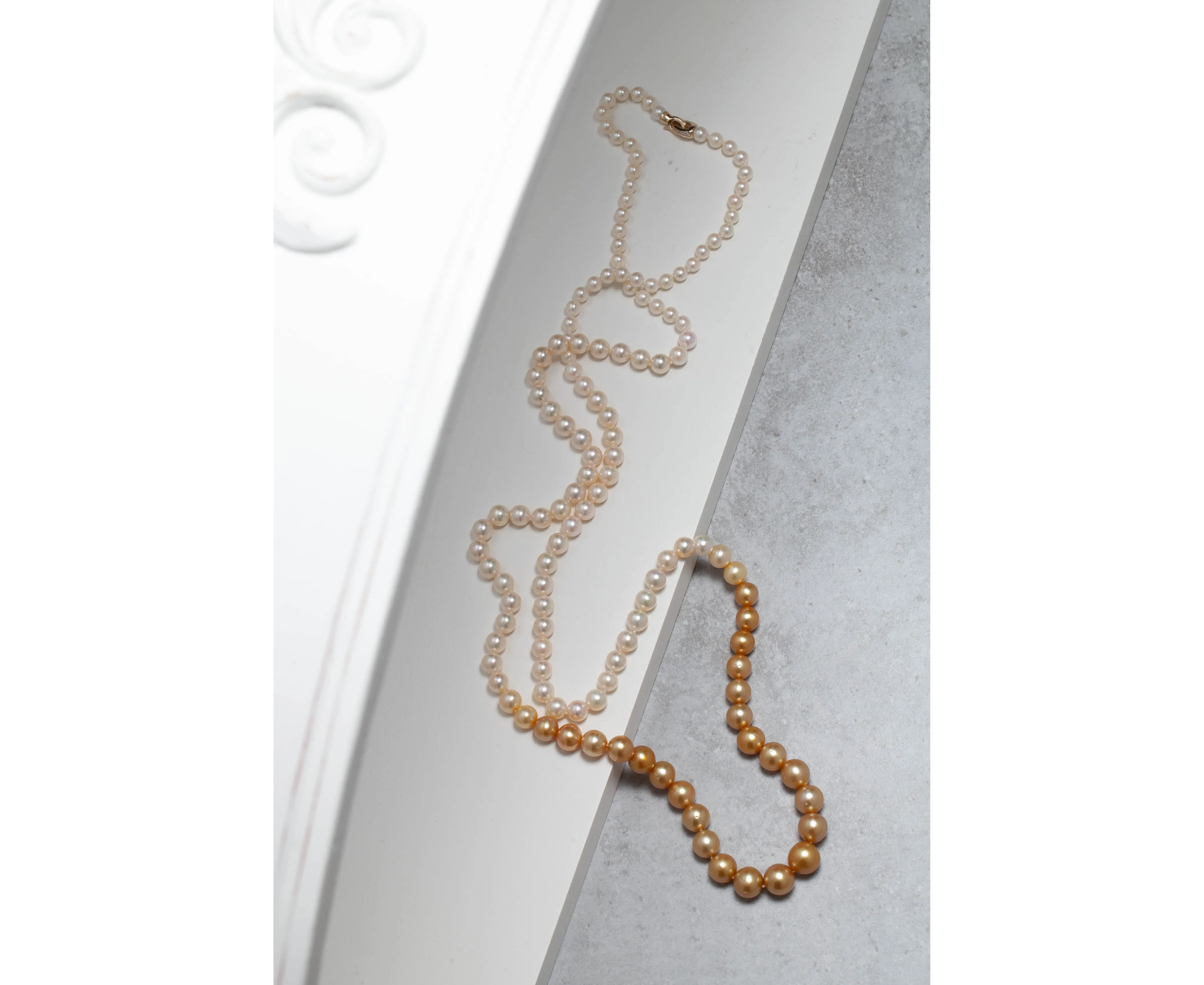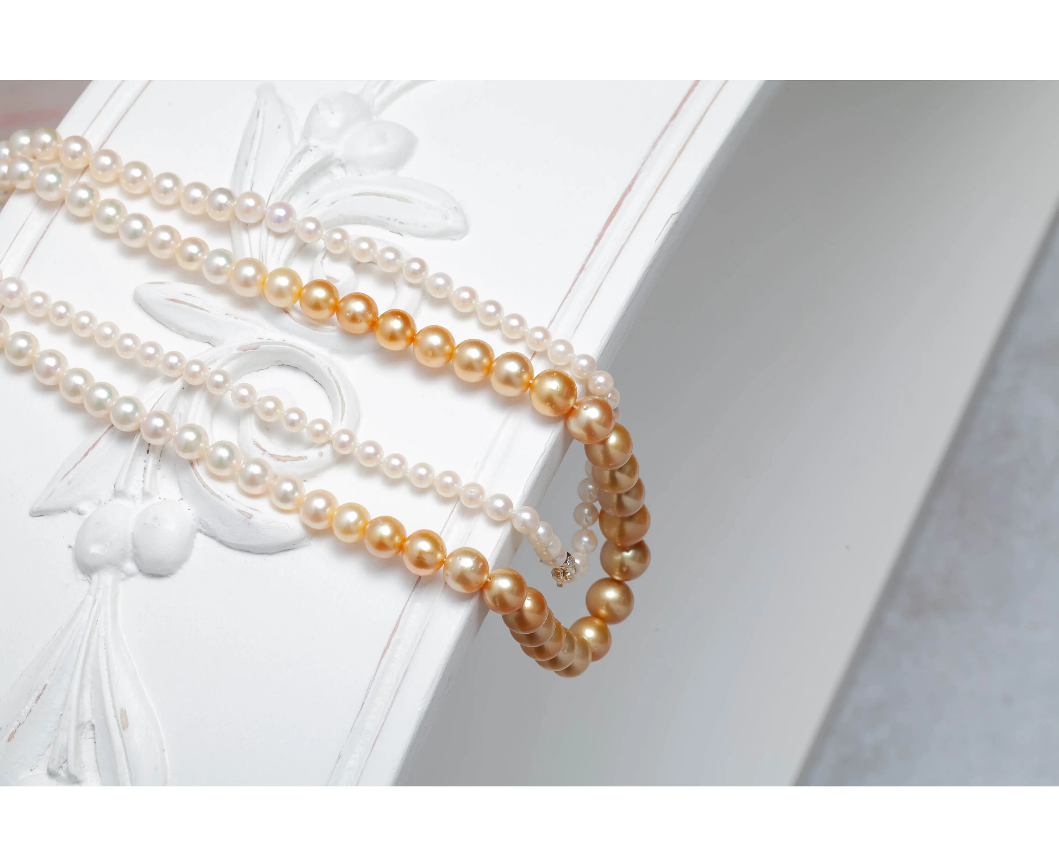 Нить с градиентом в белом золоте из жемчуга Акоя 5-9мм и Южных морей 9-12мм, бриллианты (жемчуг Акоя 5-9 мм, Южных морей 9-12 мм, Au - 1,38 гр, кр.бр. 57 3/5 1,0 - 12)