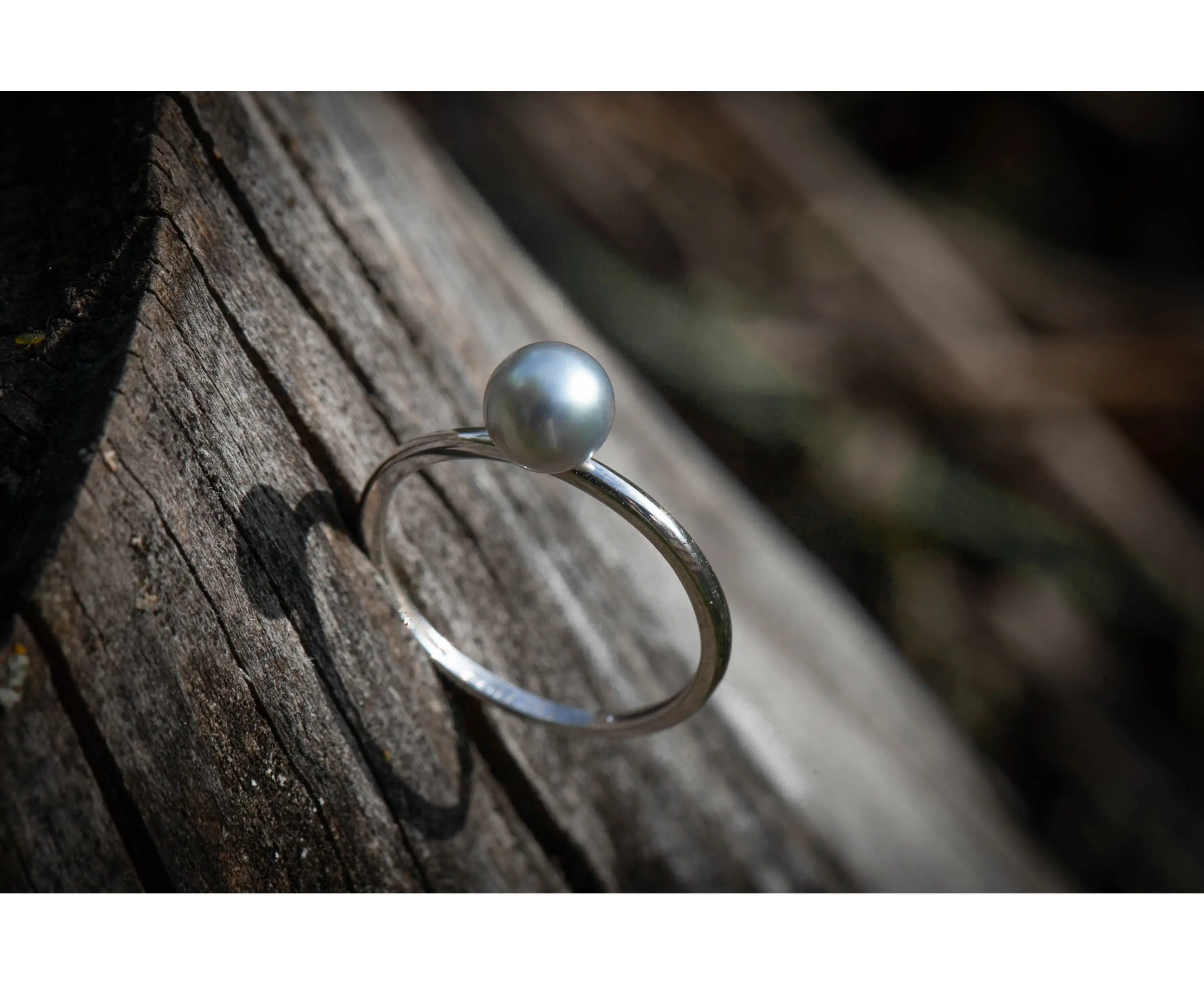 Кольцо Диана в белом золоте с жемчугом 6 мм серым (пр. жемчуг 6 мм; Au- 0,71 гр)