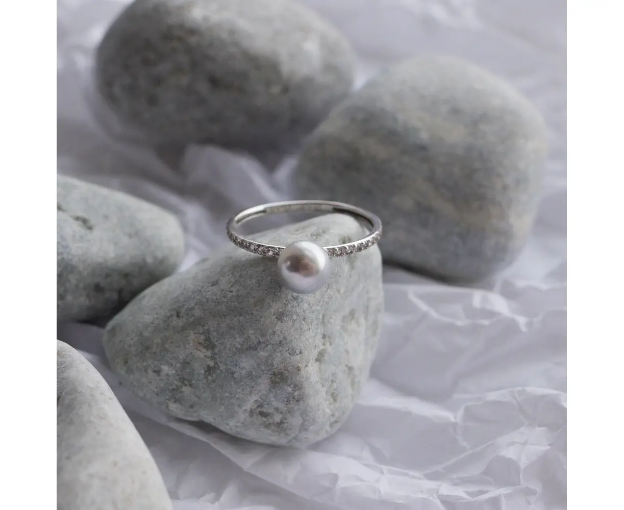 Кольцо на мизинец в белом золоте с серым жемчугом
