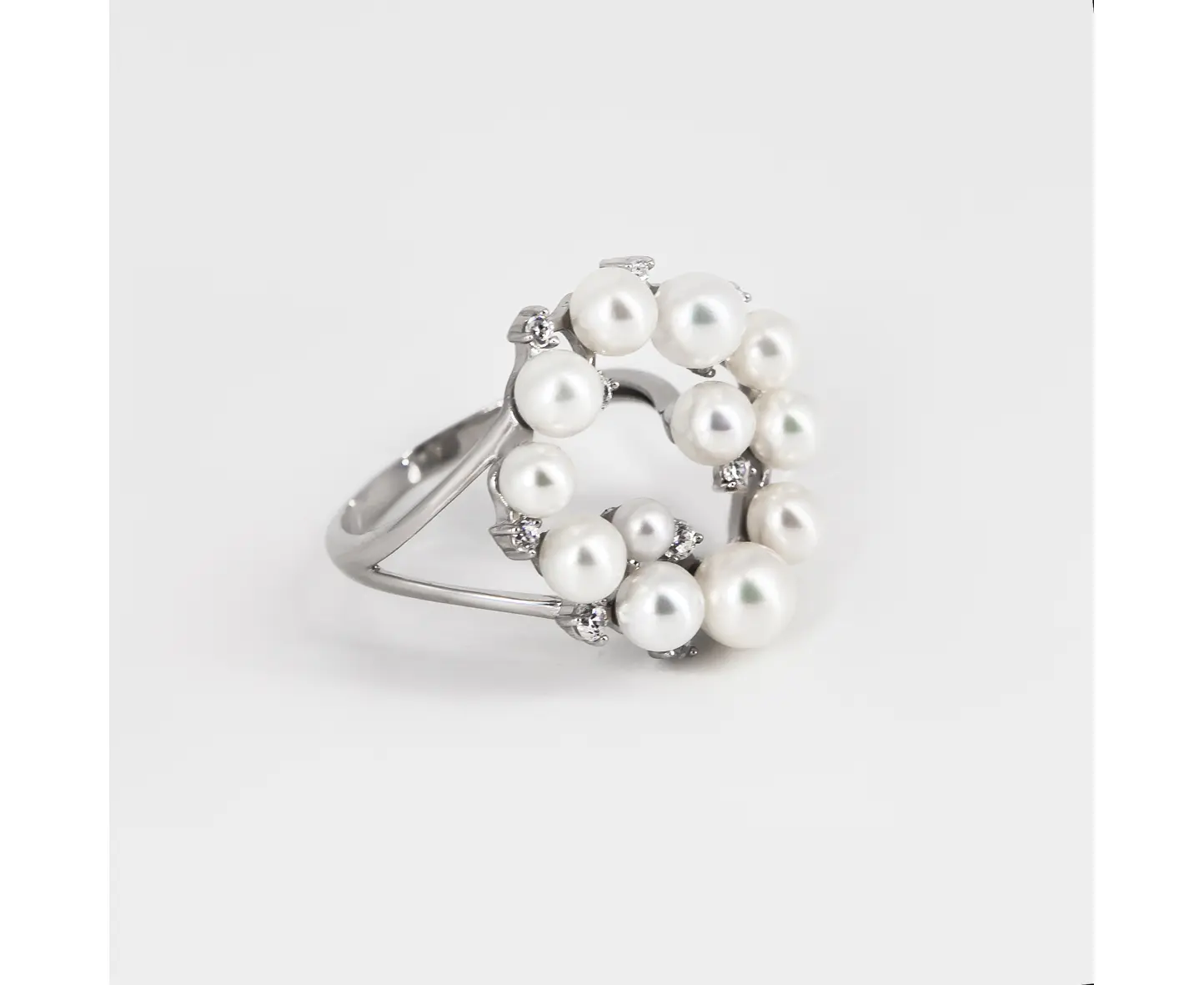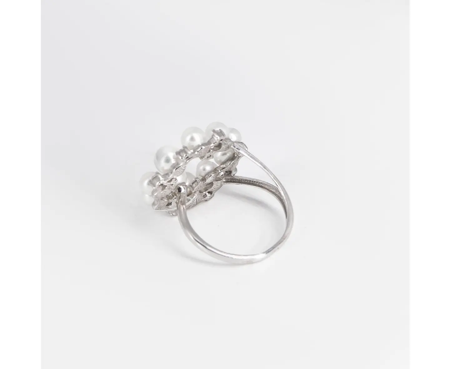 Кольцо с мелким жемчугом, золото белое, бриллианты (Бр кр 57, 2,0, 3/6А -4; 1,5 -7; пр. кр. жемчуг 4,0 - 8 шт, 5,0-2, 3,0-2; Au - 2,88 )