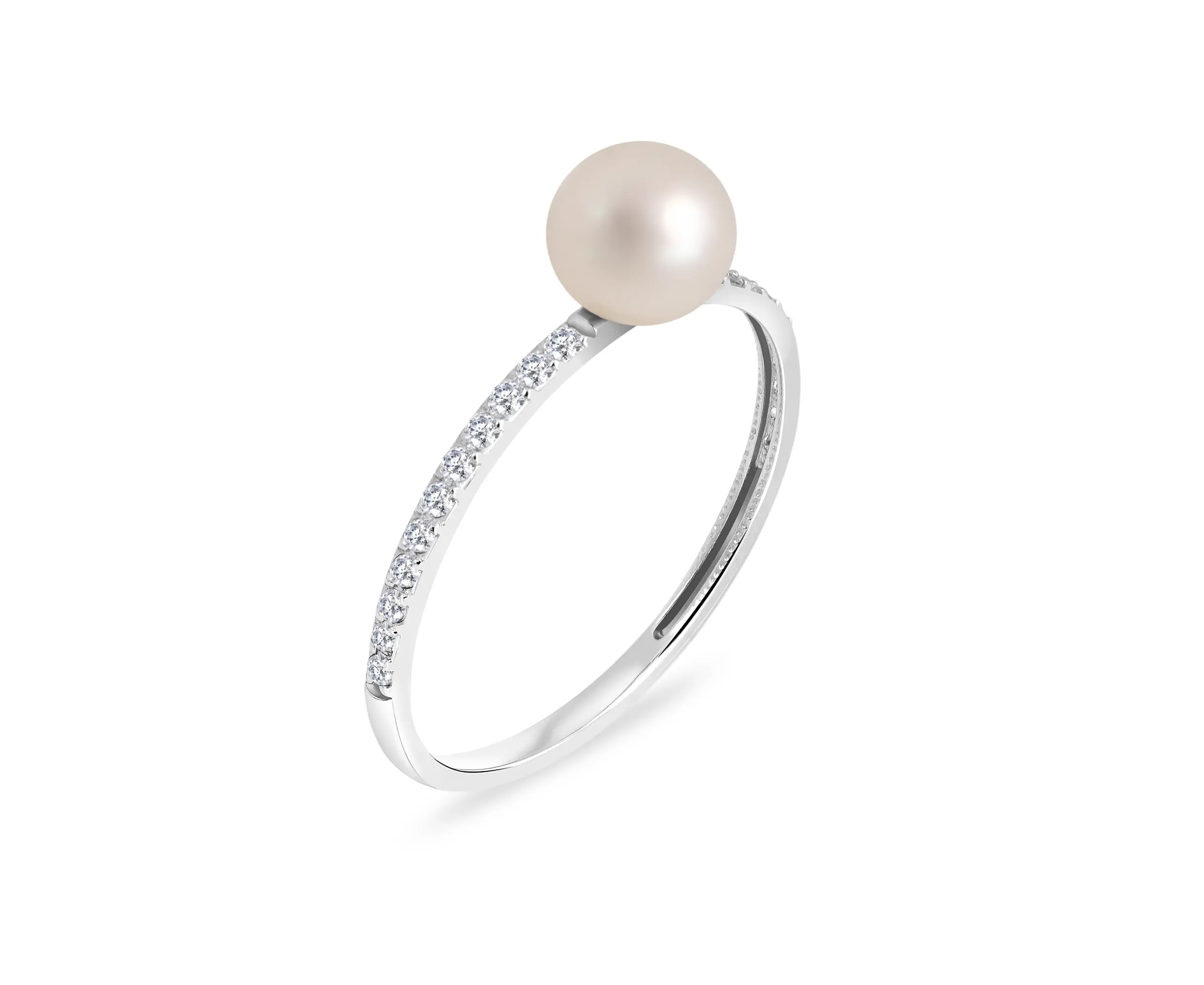 Кольцо в белом золоте с бесцв. сапфирами и жемчугом 6 мм (пр. жемчуг 6 мм; б/цв сапфиры 1,0-16; Ag - 0,63 гр)
