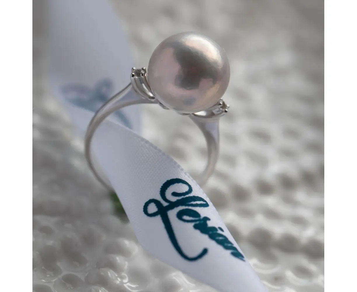 Кольцо в белом золоте с бесцветными сапфирами c серой жемчужиной 14 мм (пресн. жемчуг 14 мм, 2 бесцв.сапфира 2.0, Au - 2,1825 гр)