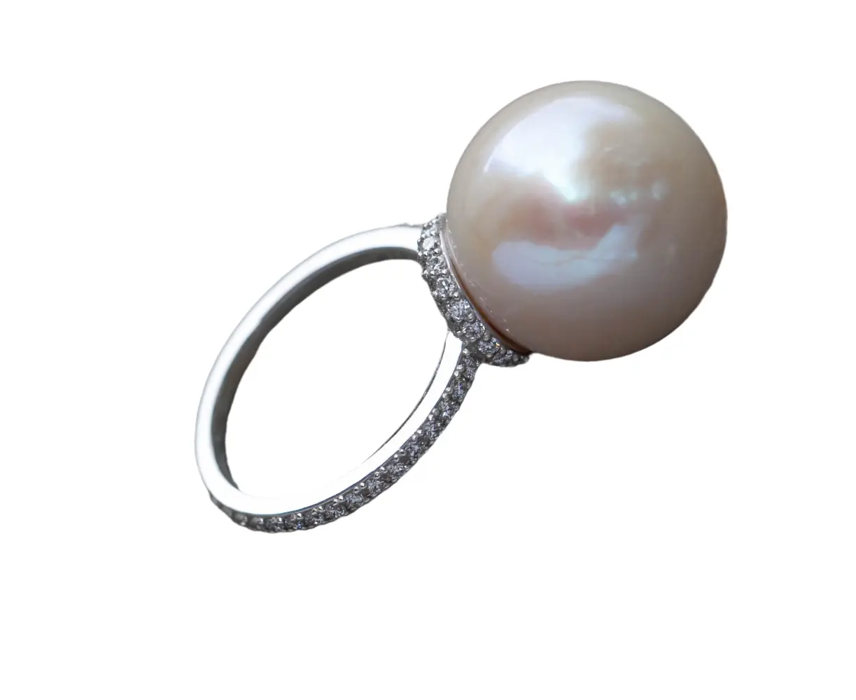 Кольцо в белом золоте с бриллиантами с морской жемчужиной 16 мм (бр кр.57 72 шт., жемчуг морс 16 мм, Au 2,83 гр)