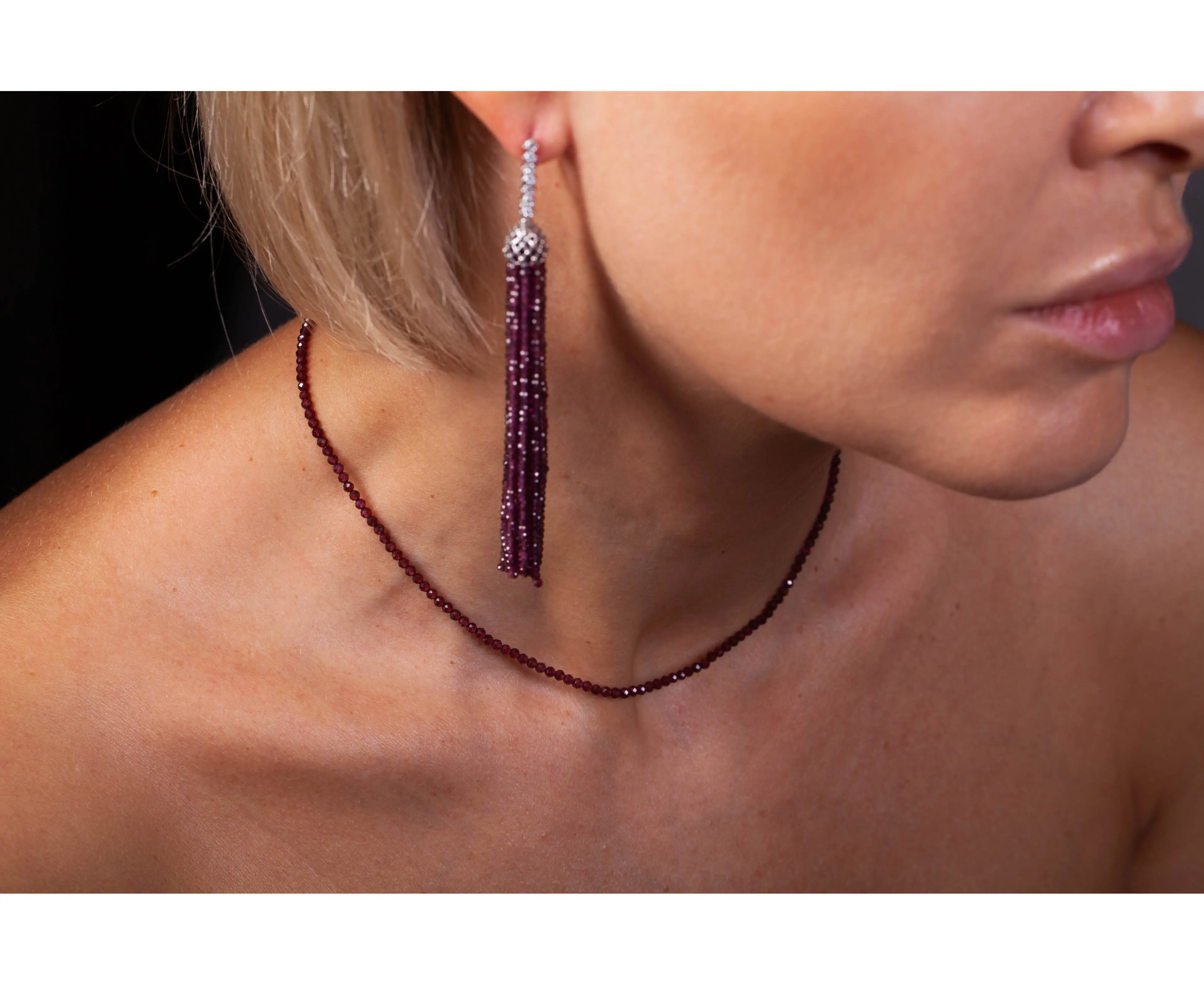 Нить в серебре на шею из граната (Гранат юв. огранки 3 мм, Ag - 0,8 гр)