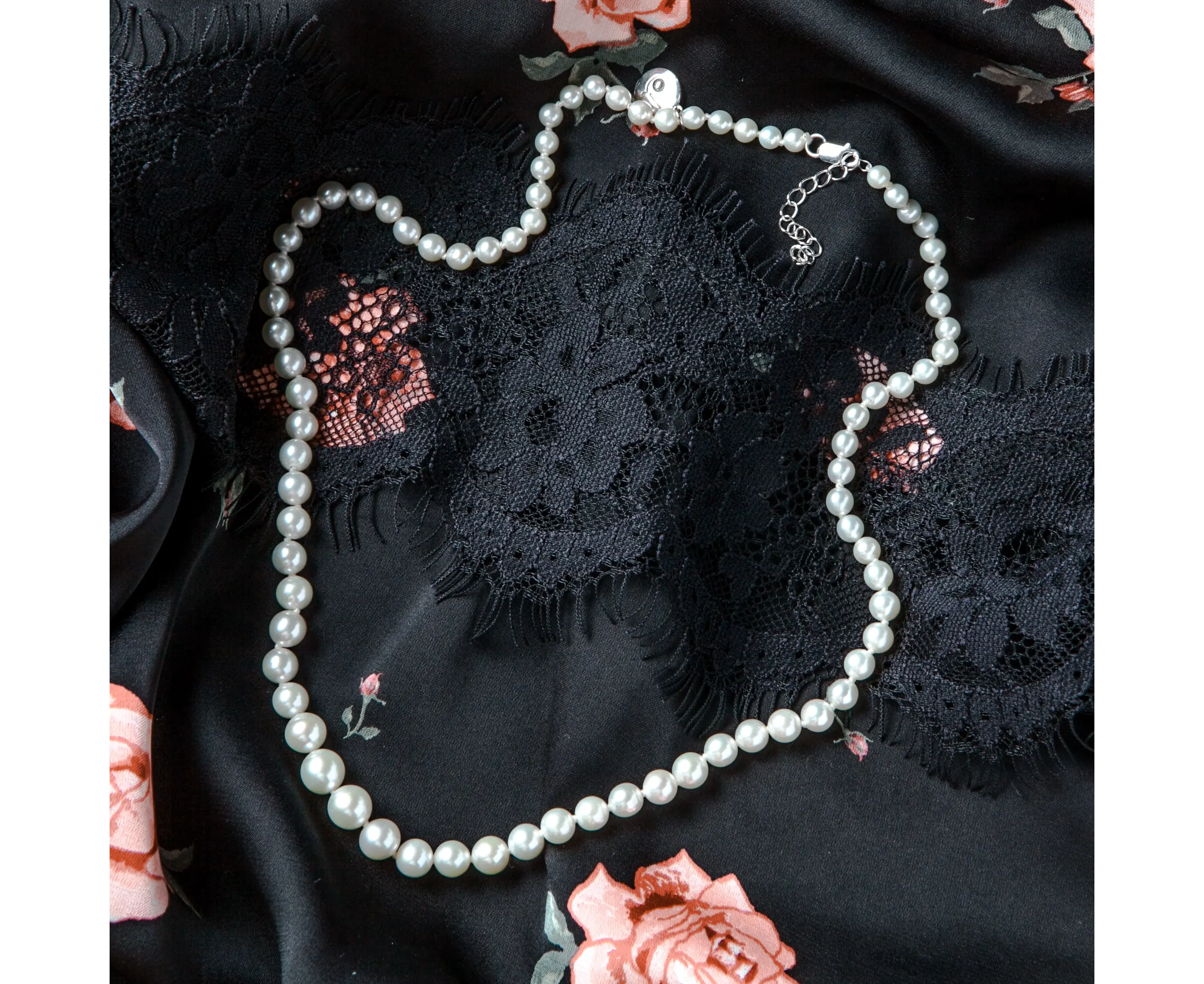 Нить в серебре из жемчуга разного диаметра (пр. жемчуг d 4-9 мм. ААА Аg 2,86 гр)