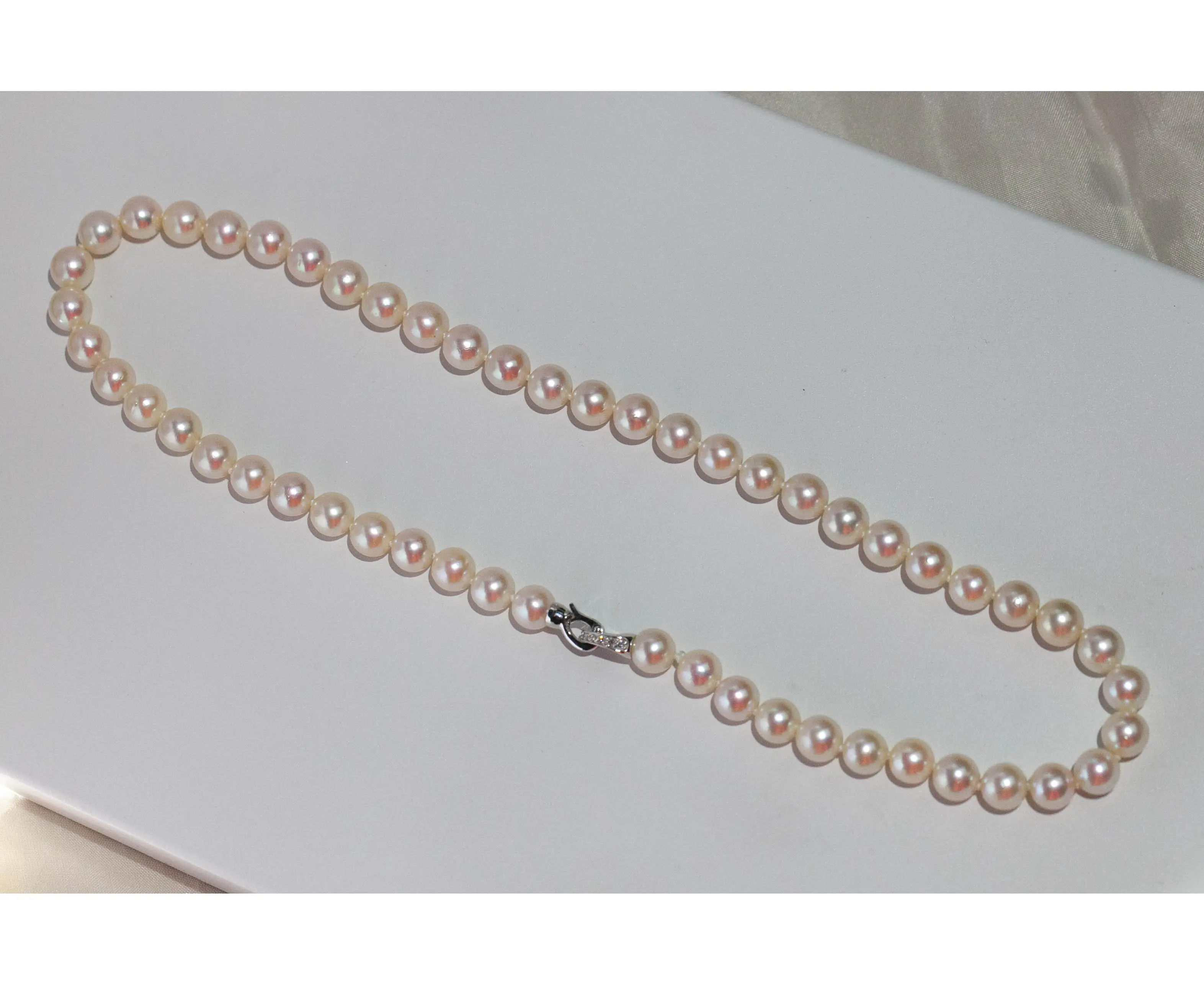 Ожерелье в белом золоте из жемчуга 8-9 мм 43 см