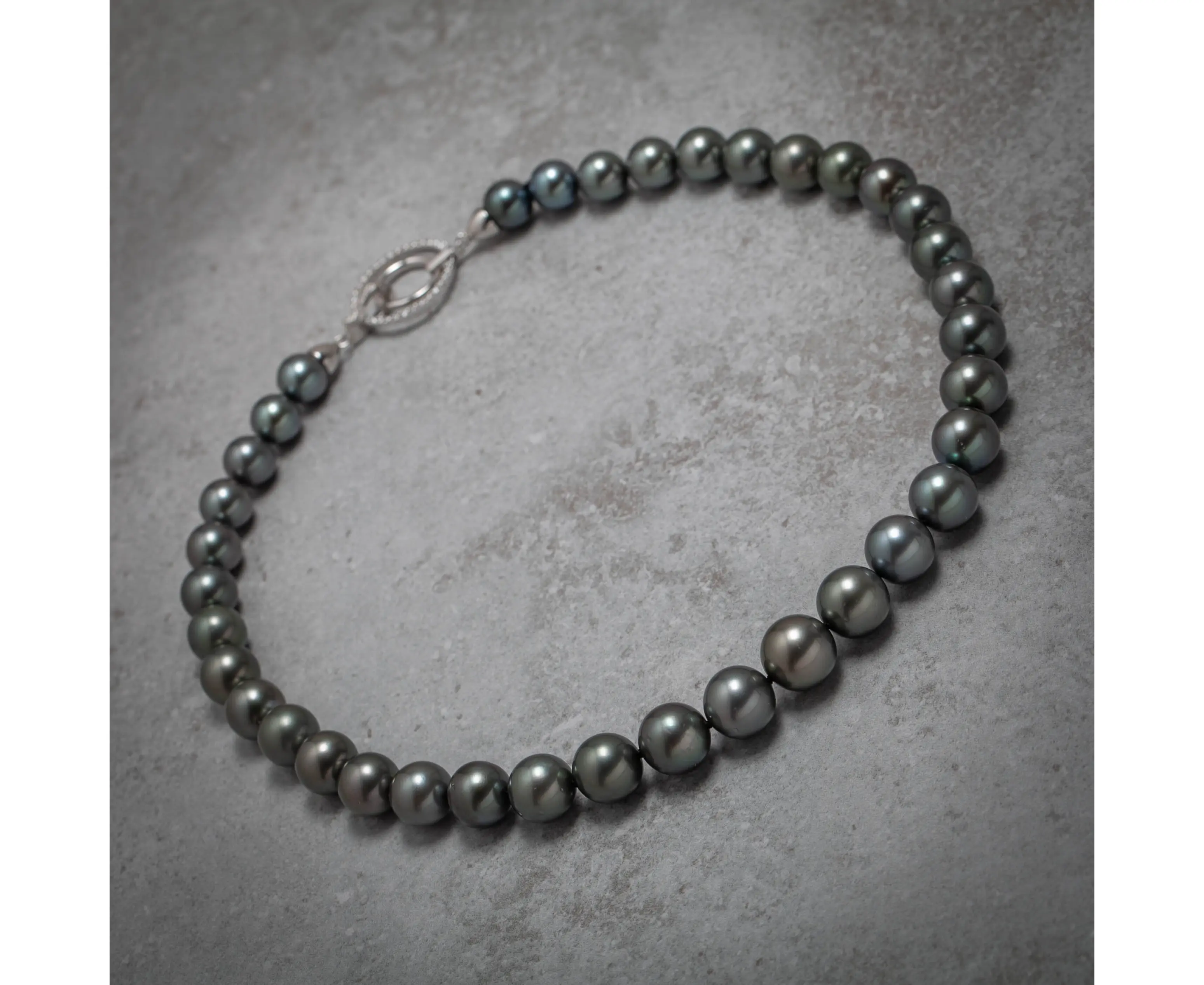 Ожерелье в белом золоте из жемчуга Таити 10-13мм, бриллианты (Жемчуг Таити 10-13 мм, кр.бр. 57 3/5 1,5-36; 1,25-16 0,124 ct; Аu - 5,65 гр)