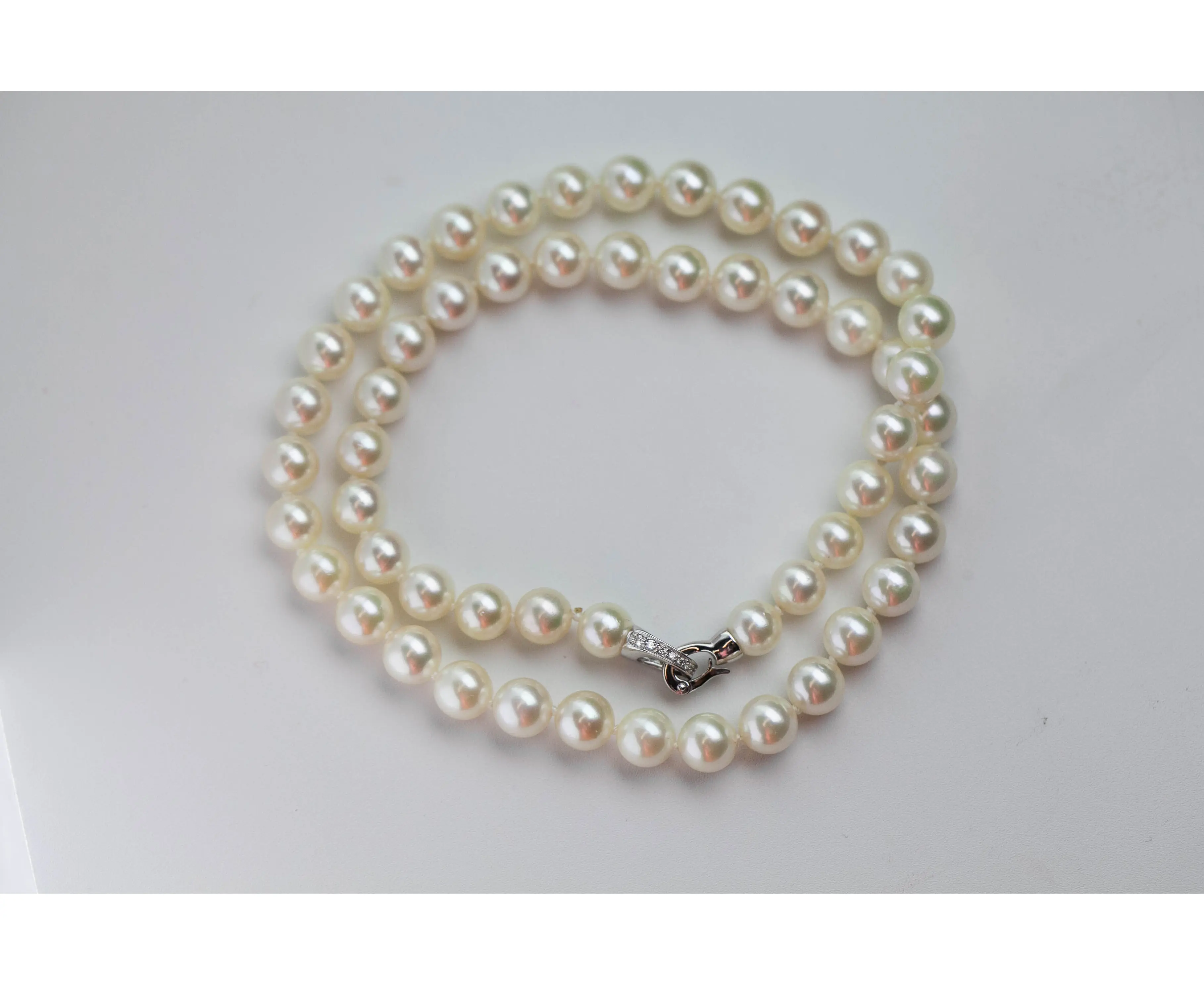 Ожерелье в белом золоте из белого жемчуга 8 мм
