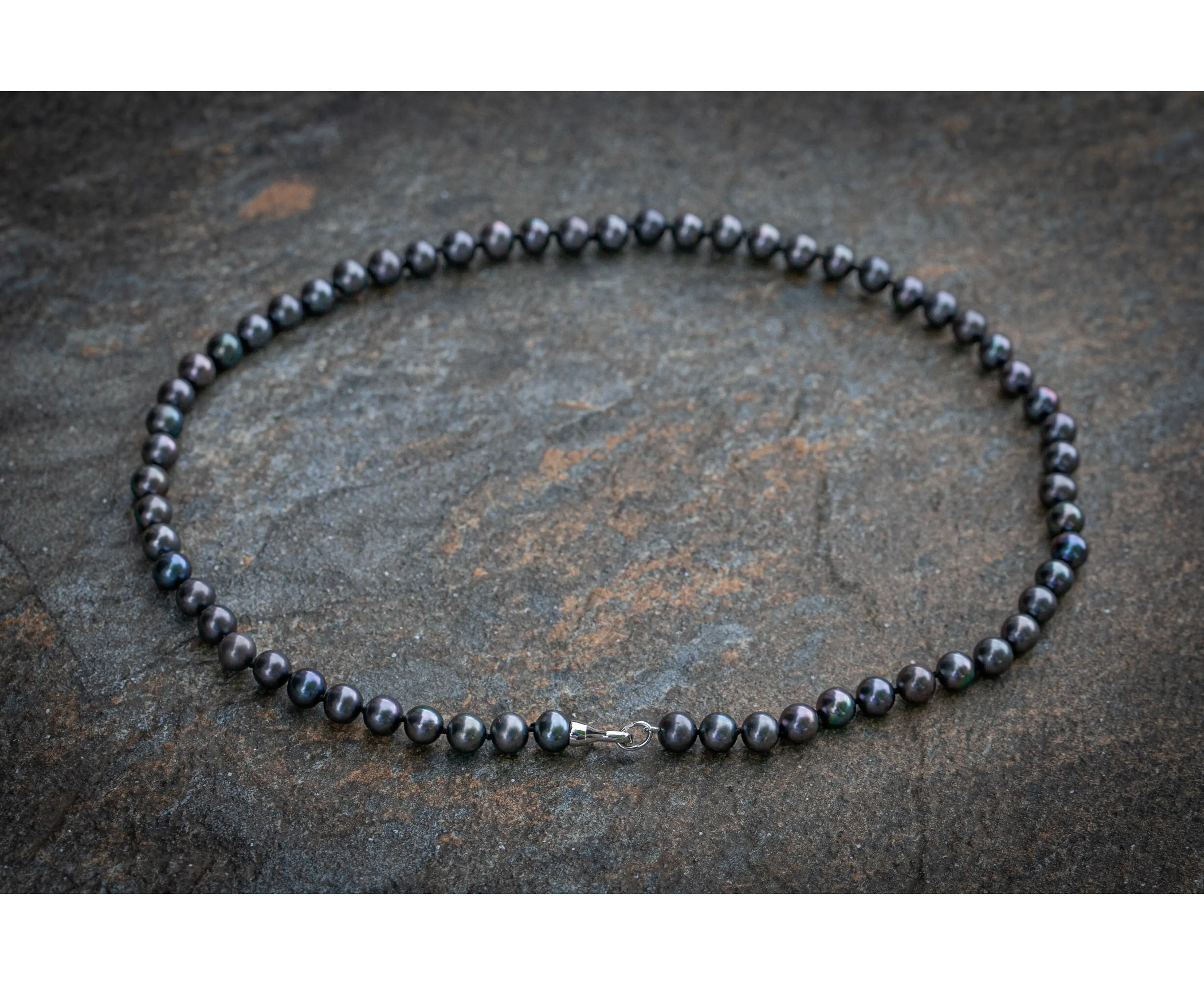 Ожерелье в белом золоте из темного жемчуга d 6 мм, 50 см