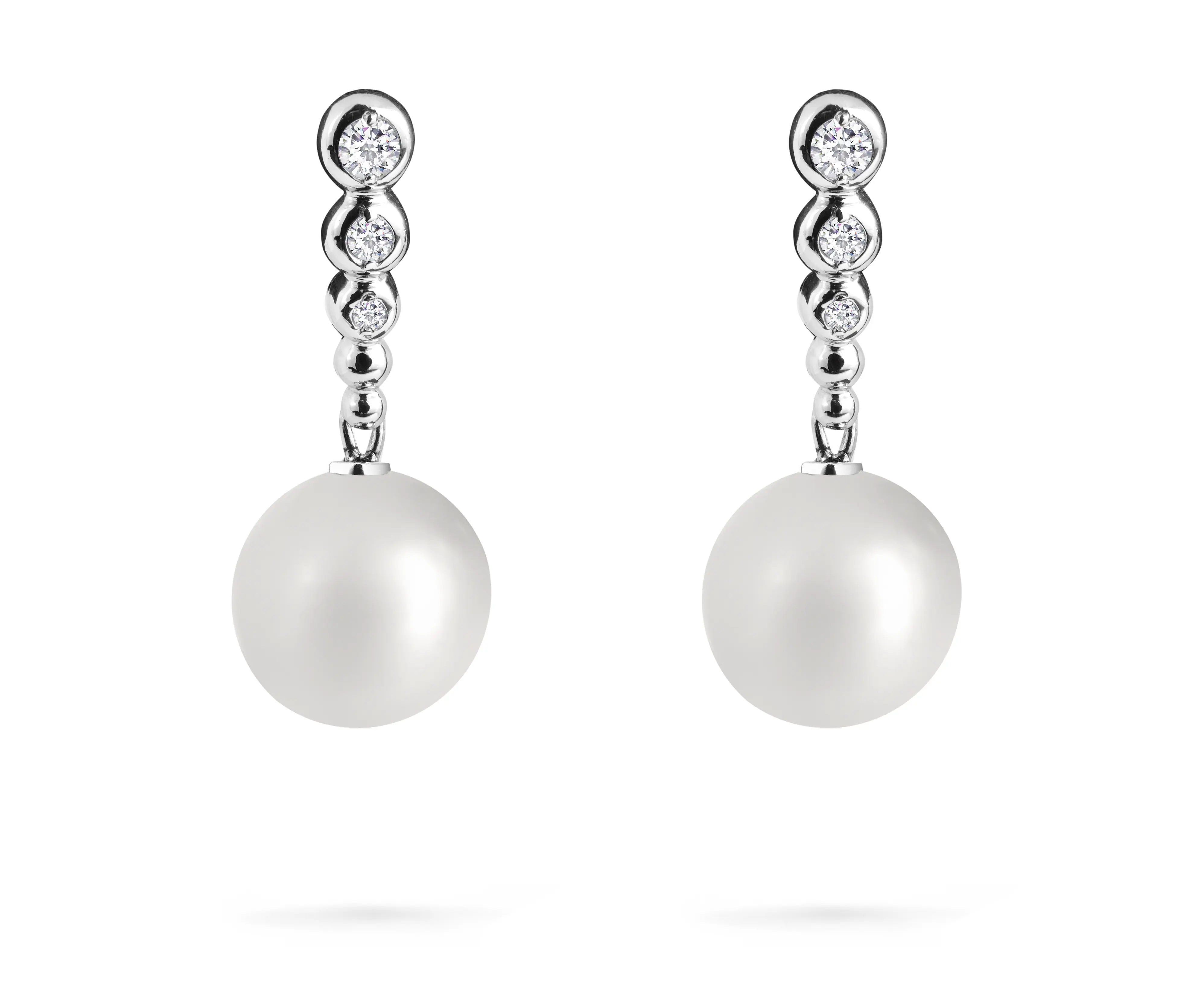 Серьги Бэлла с жемчугом шар 14 мм, золото белое, бриллианты