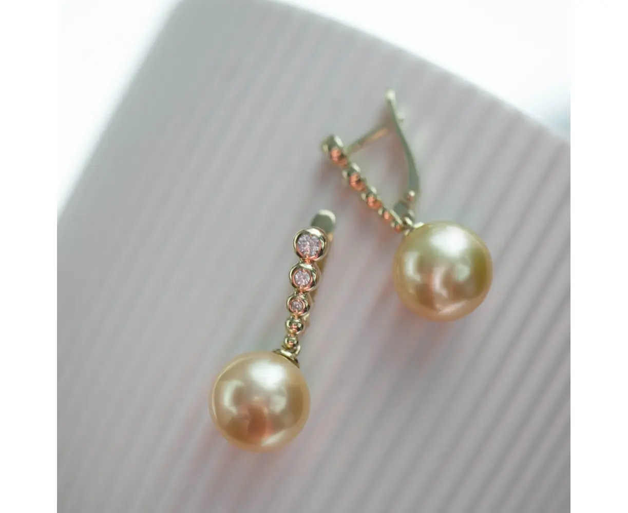 Серьги Бэлла в лимонном золоте, жемчугом морским 14мм, с бриллиантами