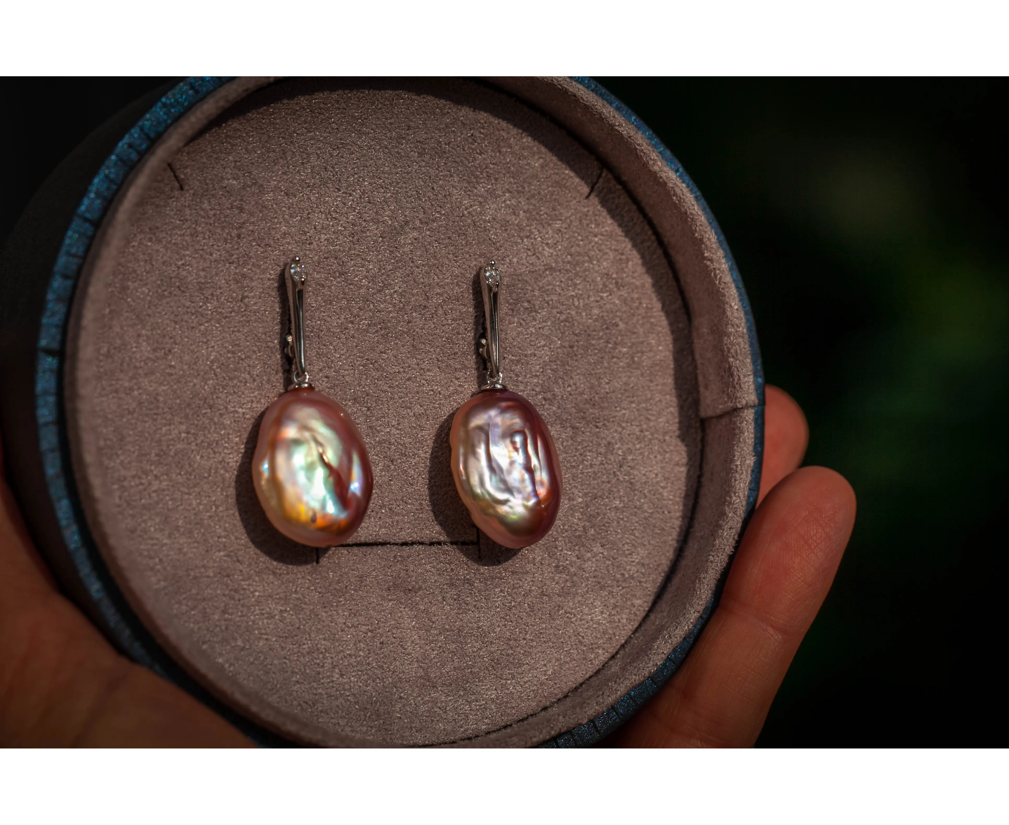 Серьги в серебре с фиолетовой барочной жемчужиной с фианитом маркиз