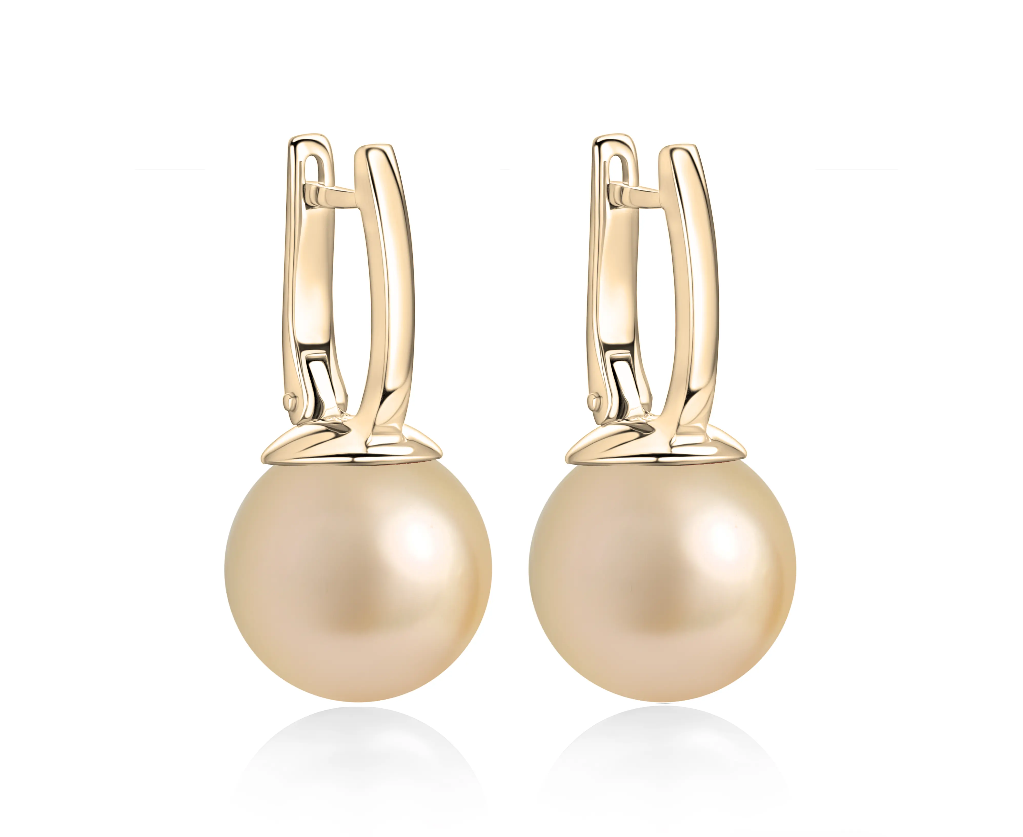 Серьги в лимонном золоте с морским жемчугом 12 мм