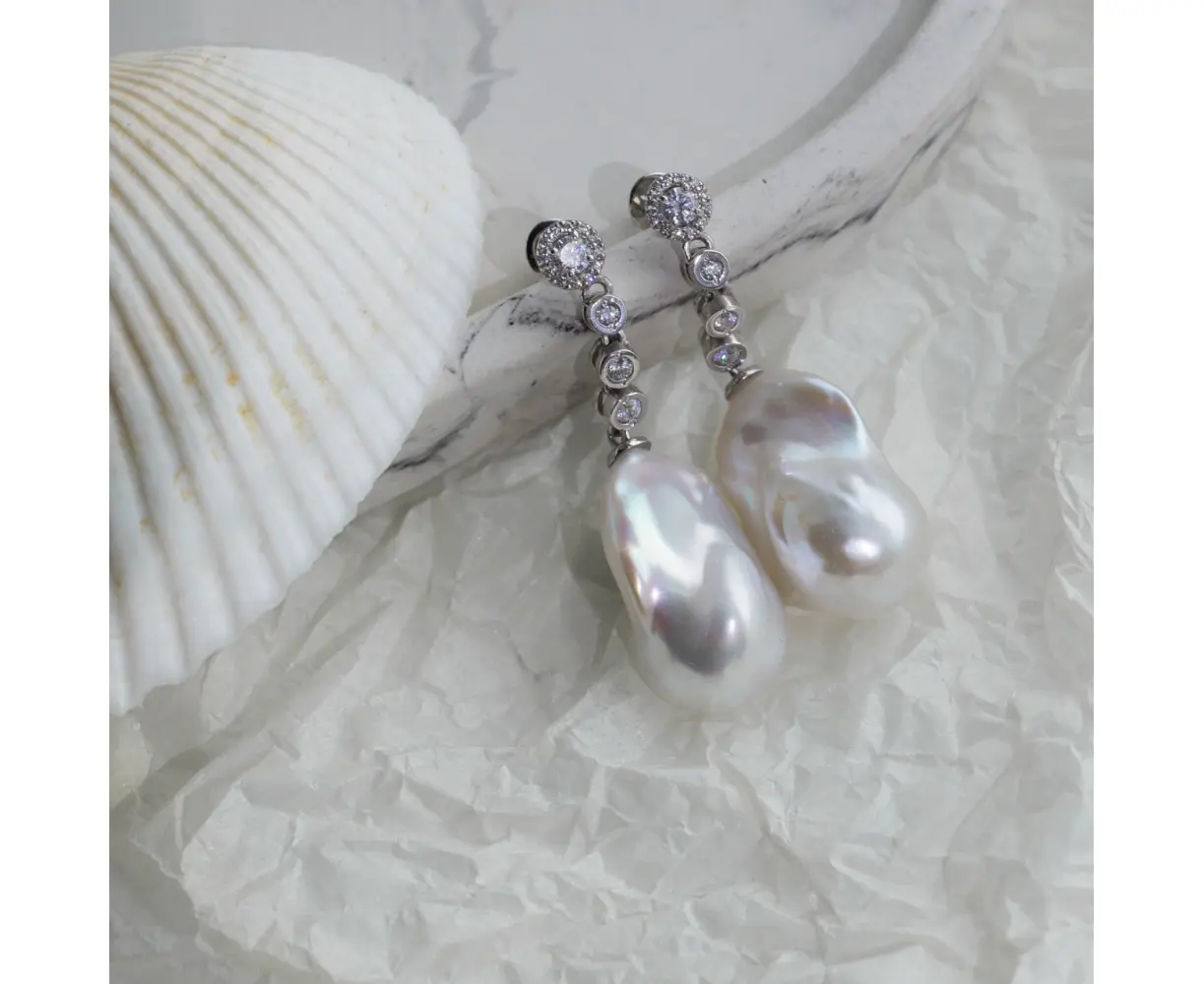Серьги в серебре с тремя кастами с барочным жемчугом