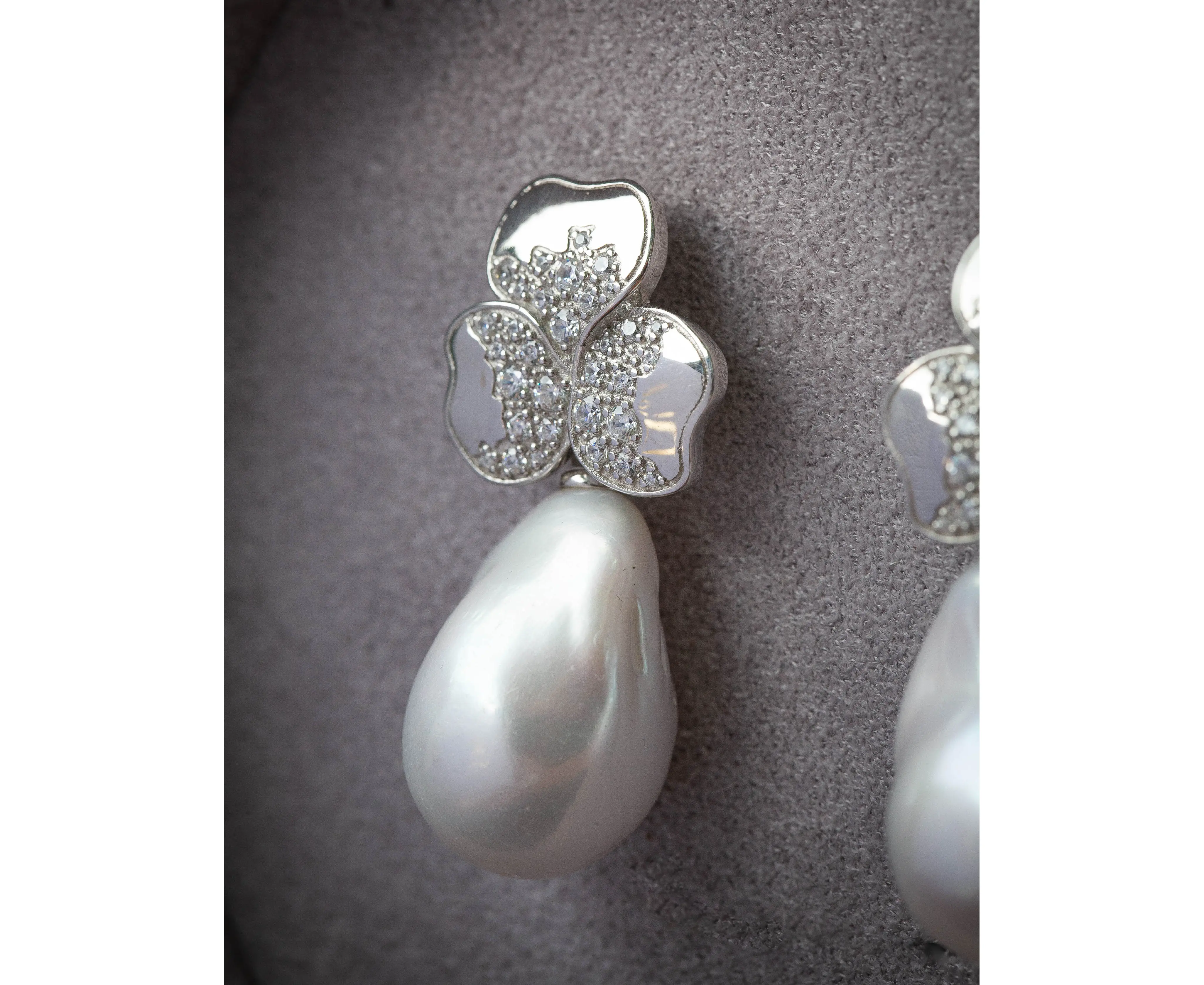 Серьги-трилистник со съемными барочными жемчужинами в серебре