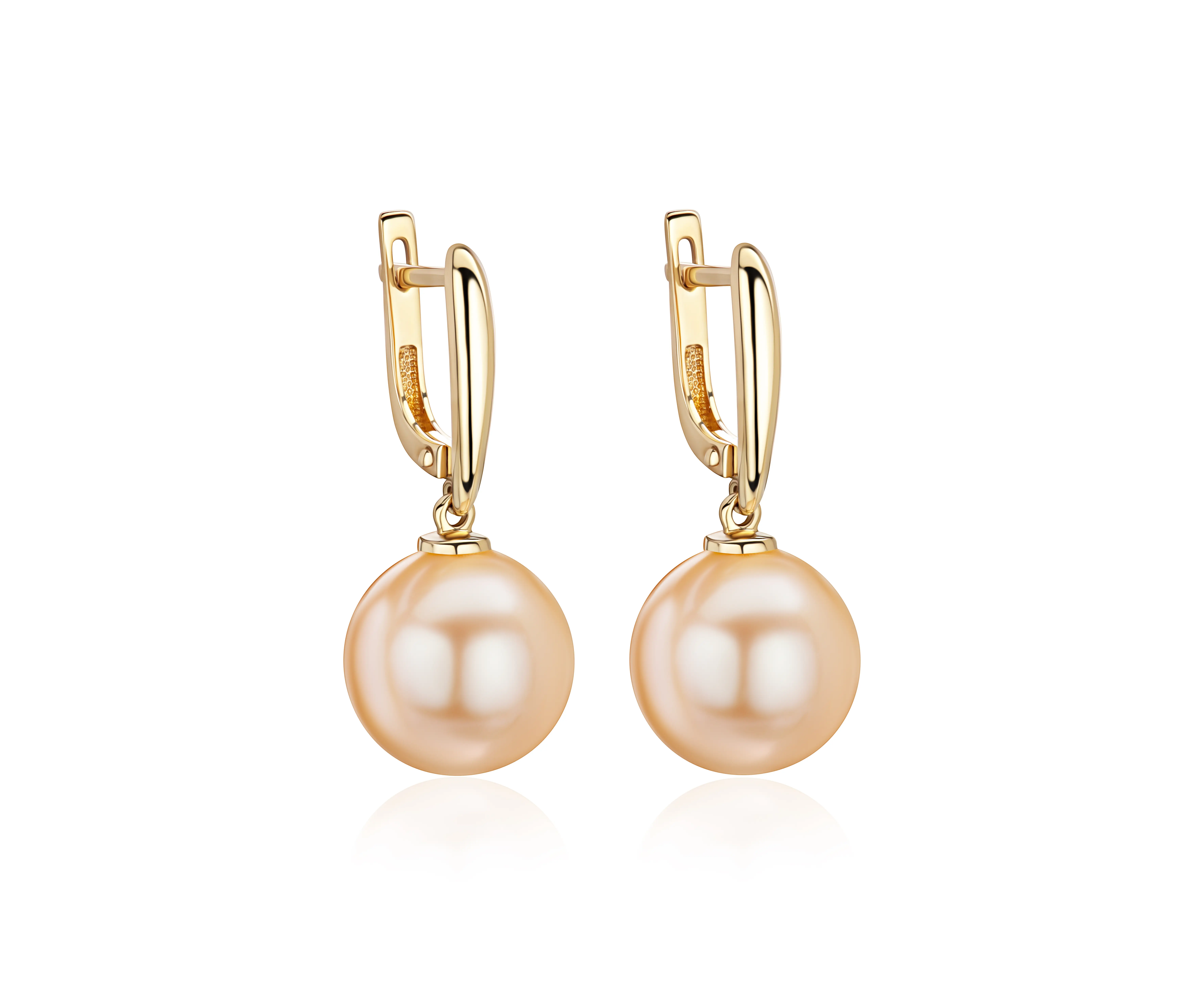 Серьги в лимонном золоте с цветным жемчугом 12 мм. (пр.жемчуг шар 12 мм, Аu - 1,93 гр)