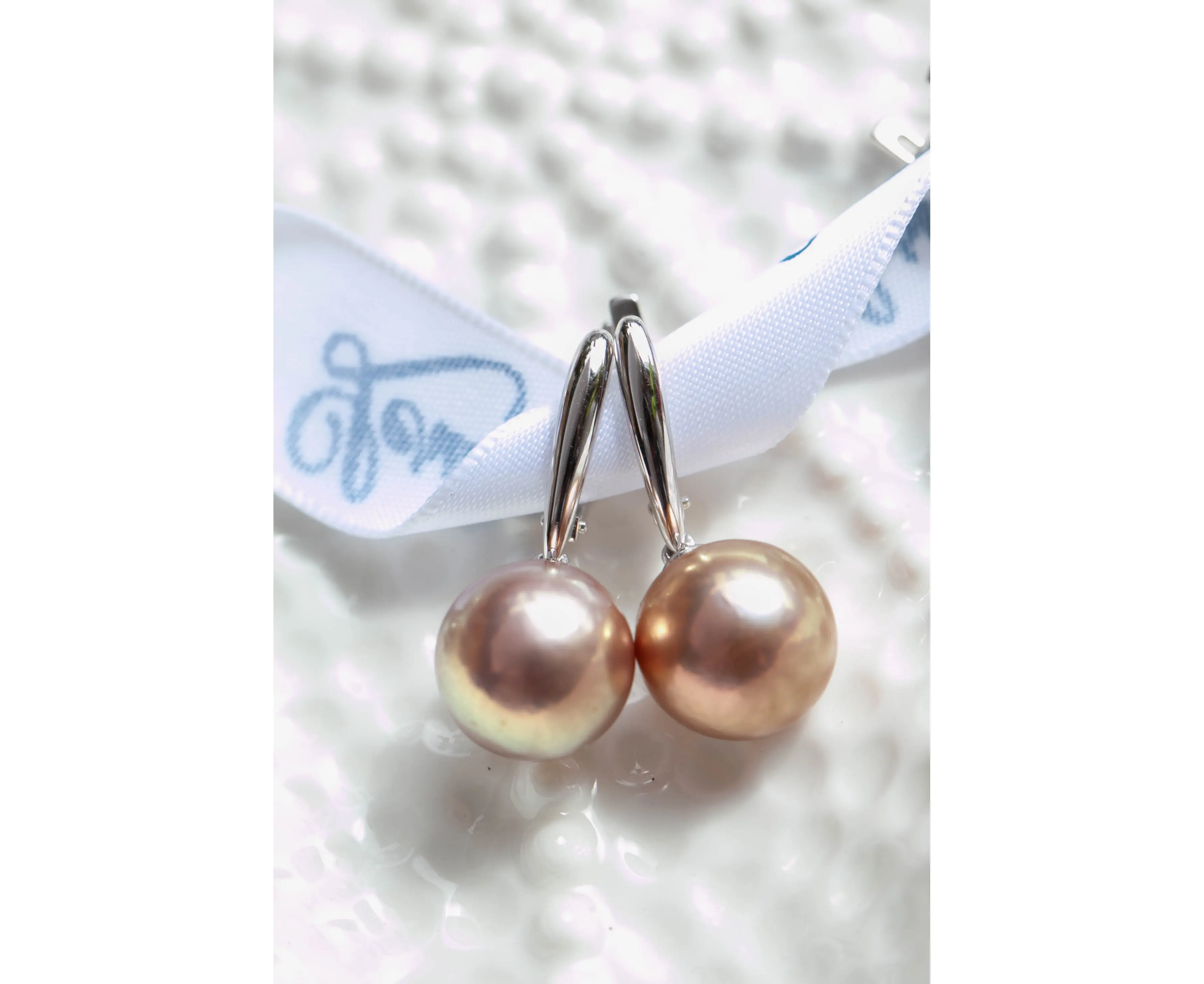 Серьги в белом золоте с цветными жемчужинами 12мм
