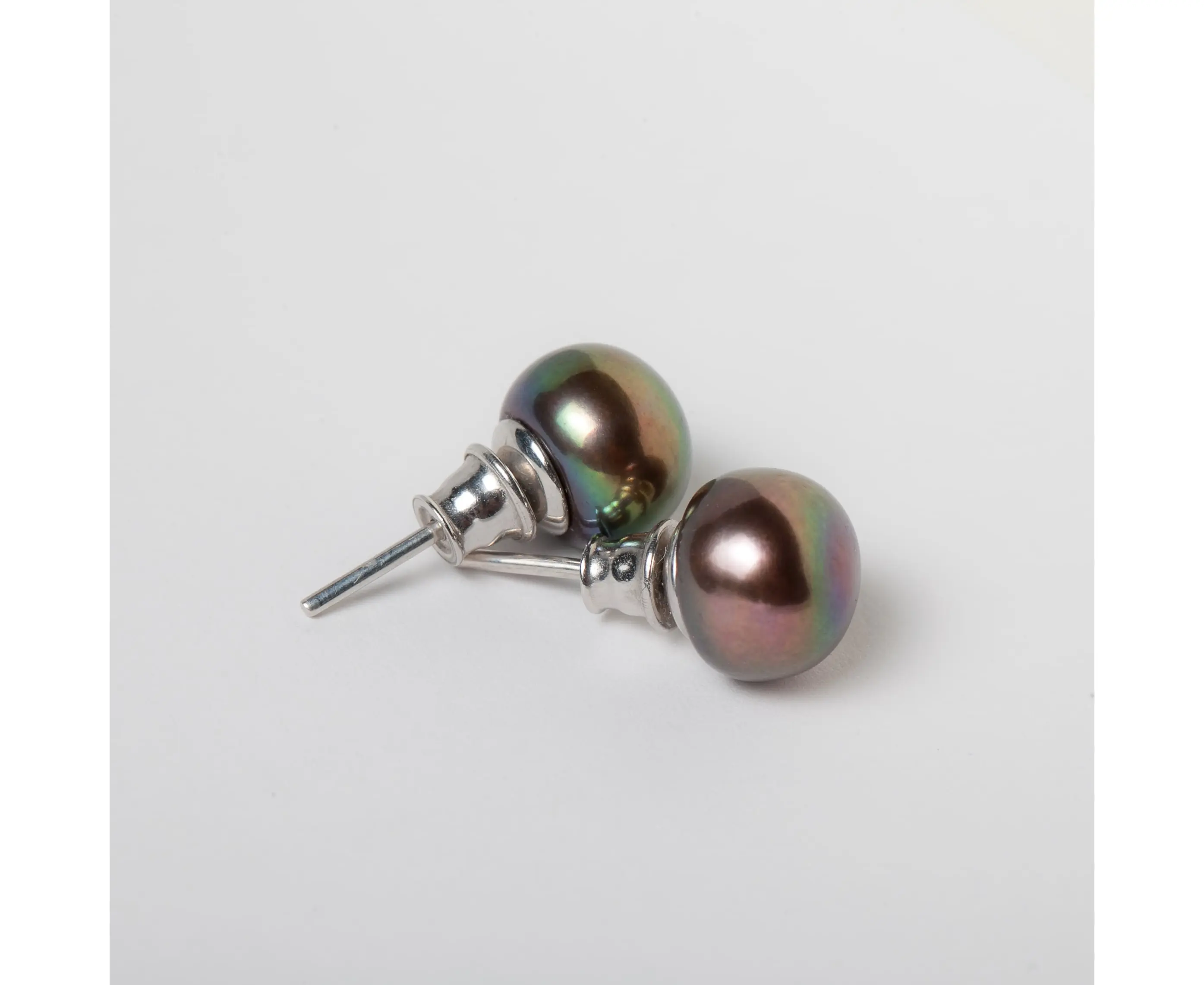 Пусеты в серебре с пресноводным жемчугом 10-11мм темные