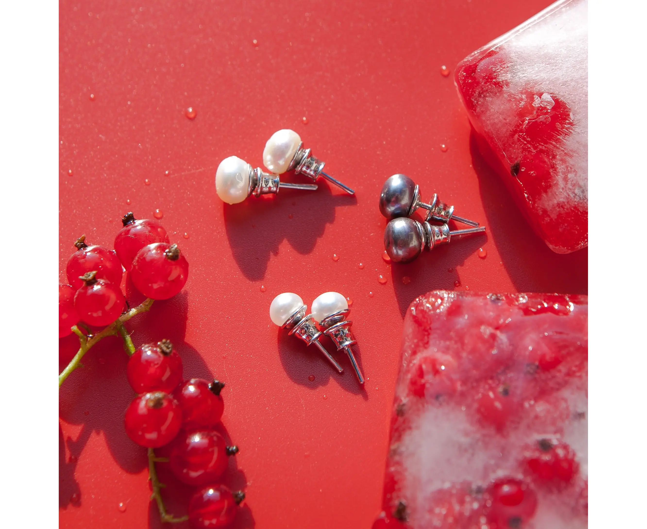 Пусеты в серебре с пресноводным жемчугом 8-9мм