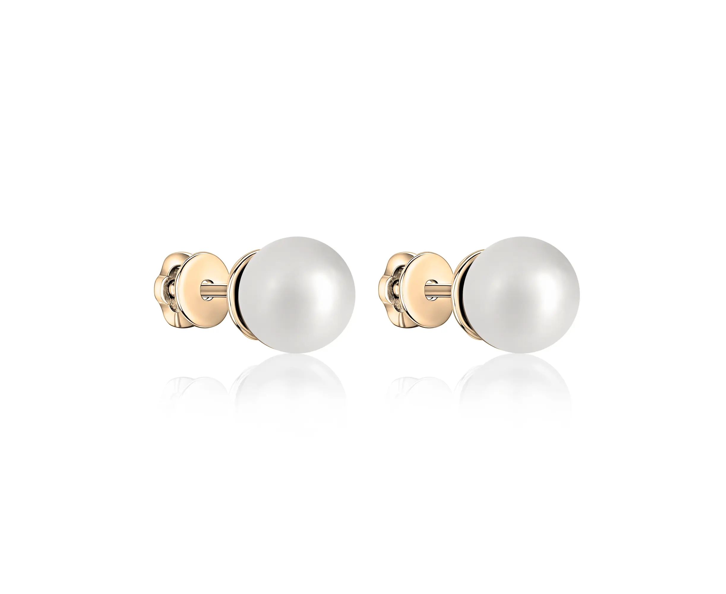 Пусеты в желтом золоте с белым жемчугом 9 мм (жемчуг 9,4 мм, Au 1,39 гр)