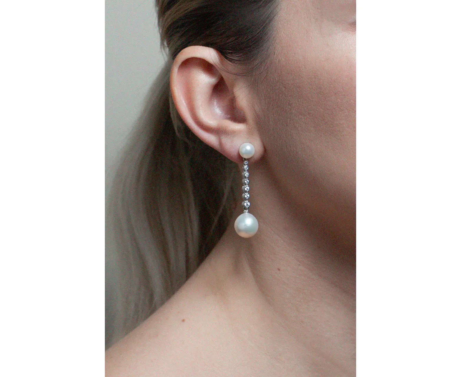 Серьги с семью подвижными кастами и жемчужиной 12 мм
