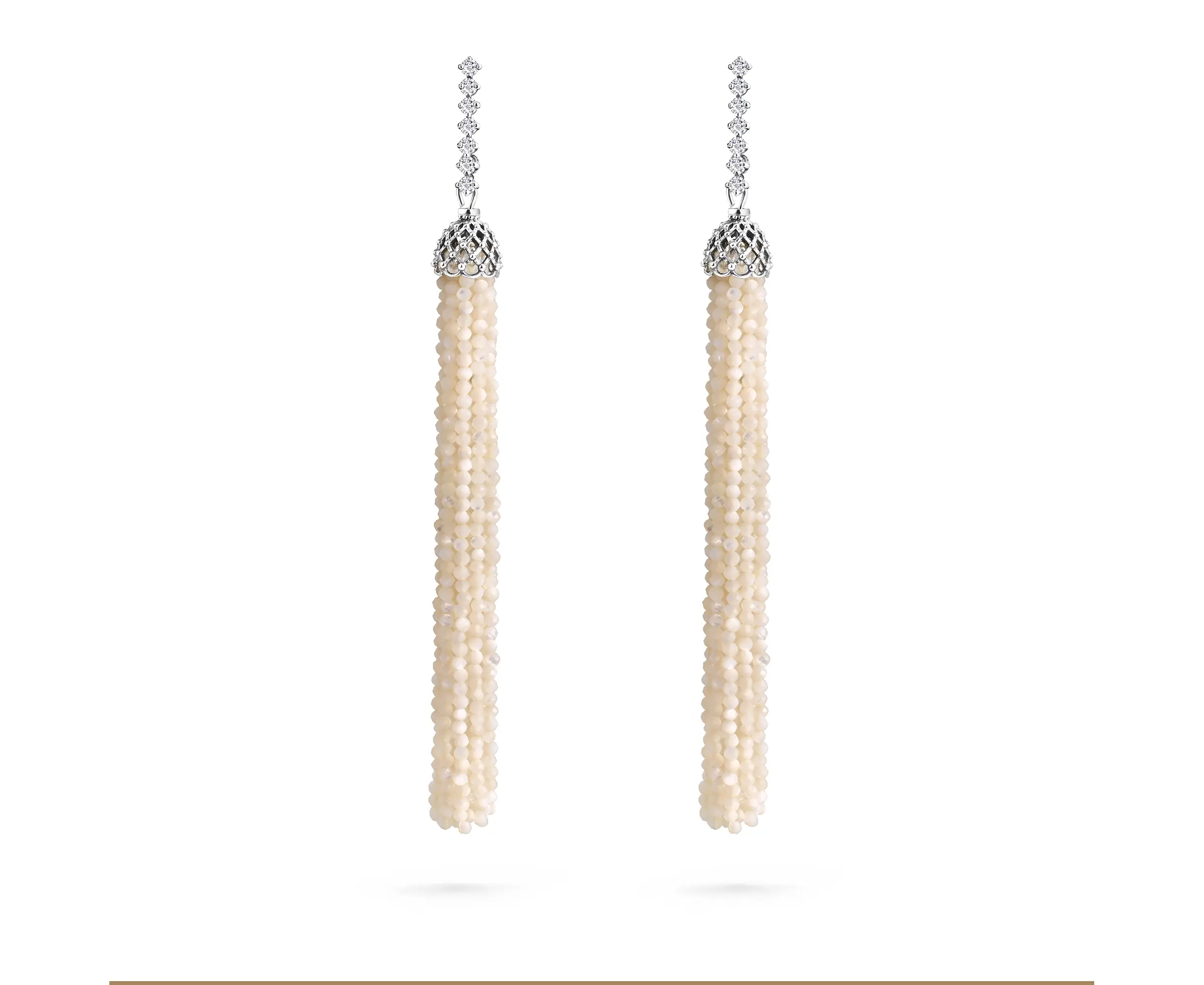 Серьги кисти из перламутра в серебре (перламутр 2,0; 14 кр фианитов 2,0, Ag 925 - 3,15 гр)