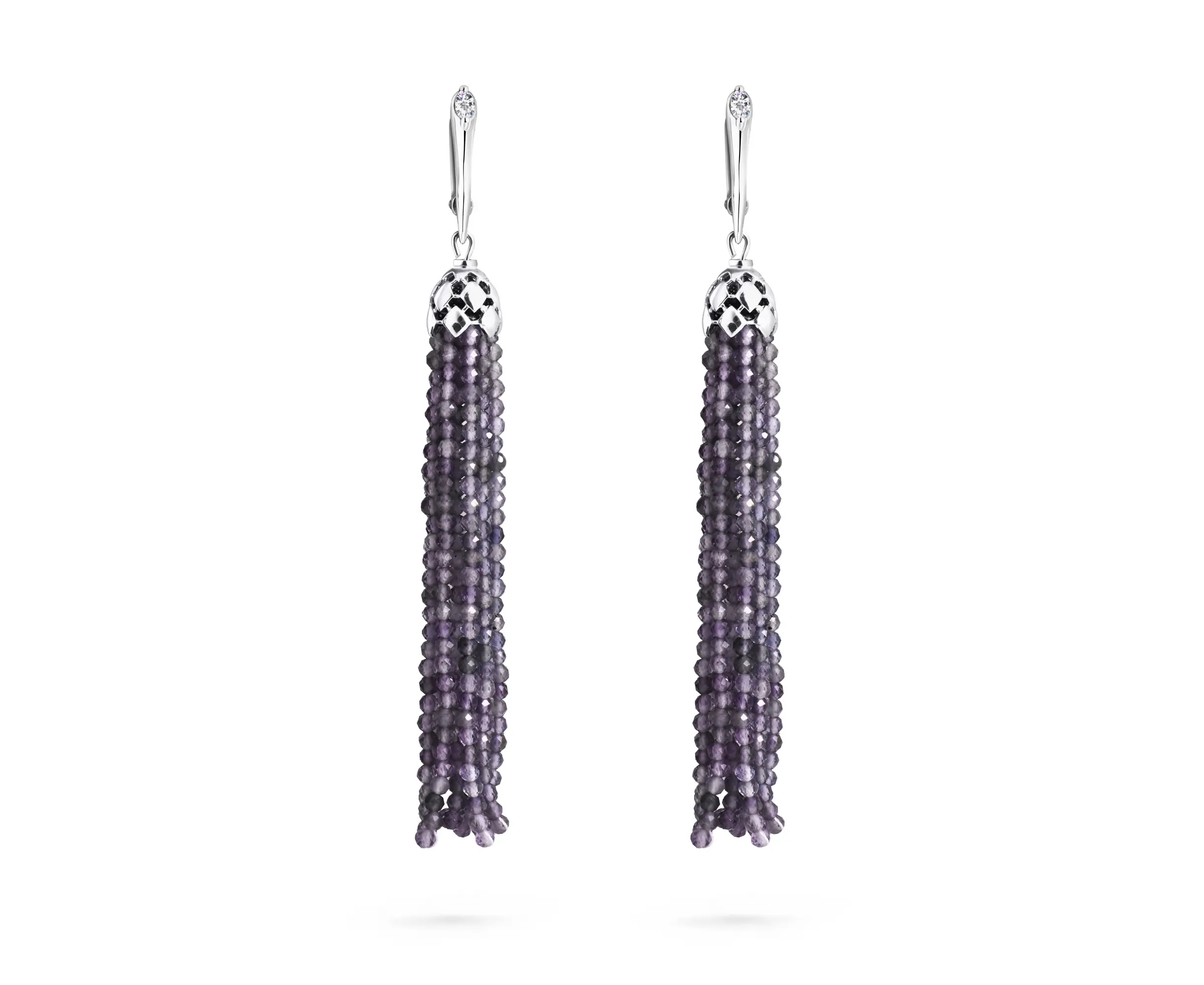 Серьги-кисти в серебре с иолитом короткие (иолит 2,0, 2 фианита маркиз 4х2 Ag 3,4 гр)