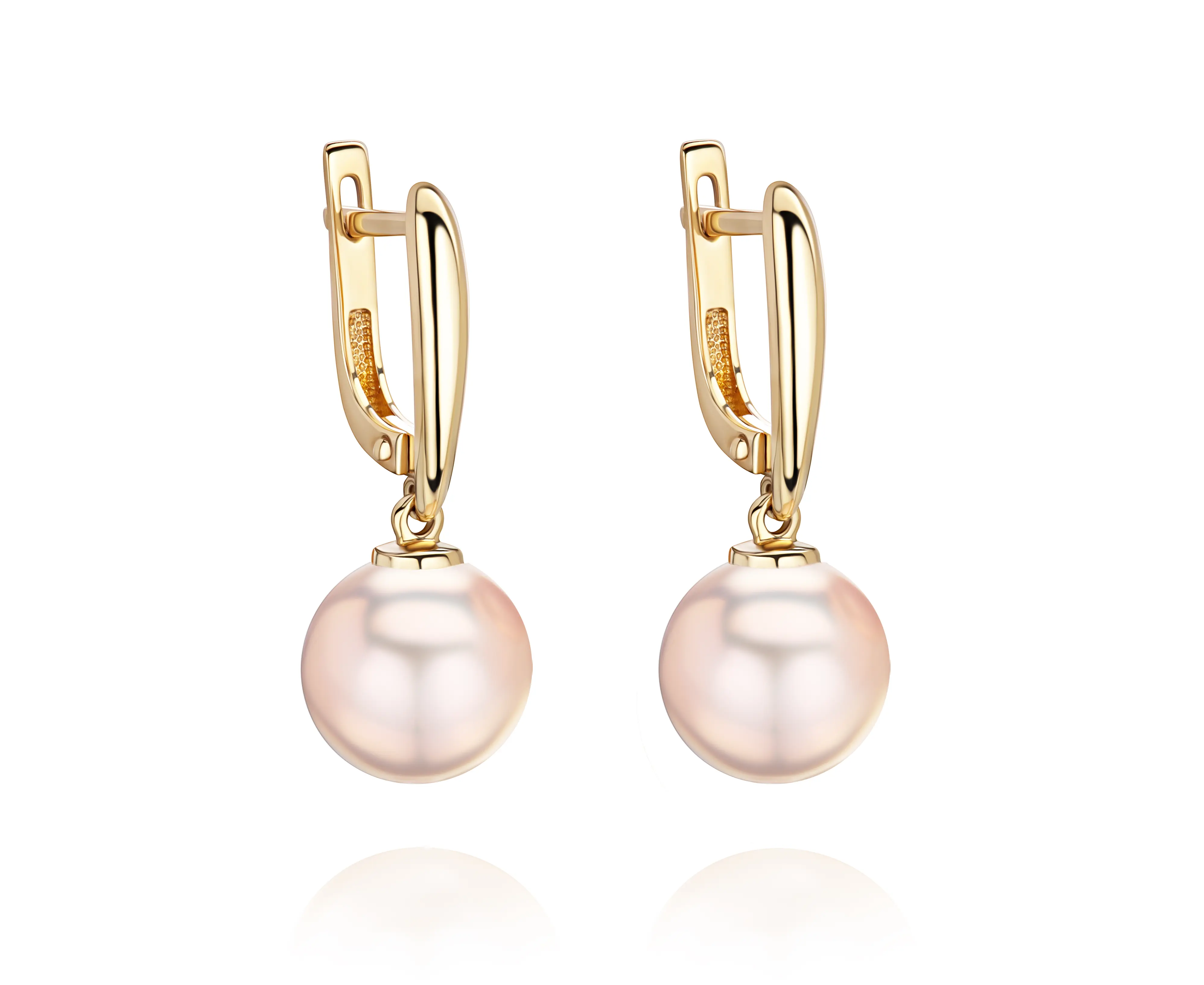 Серьги в лимонном золоте с цветными жемчужинами 9,5 мм