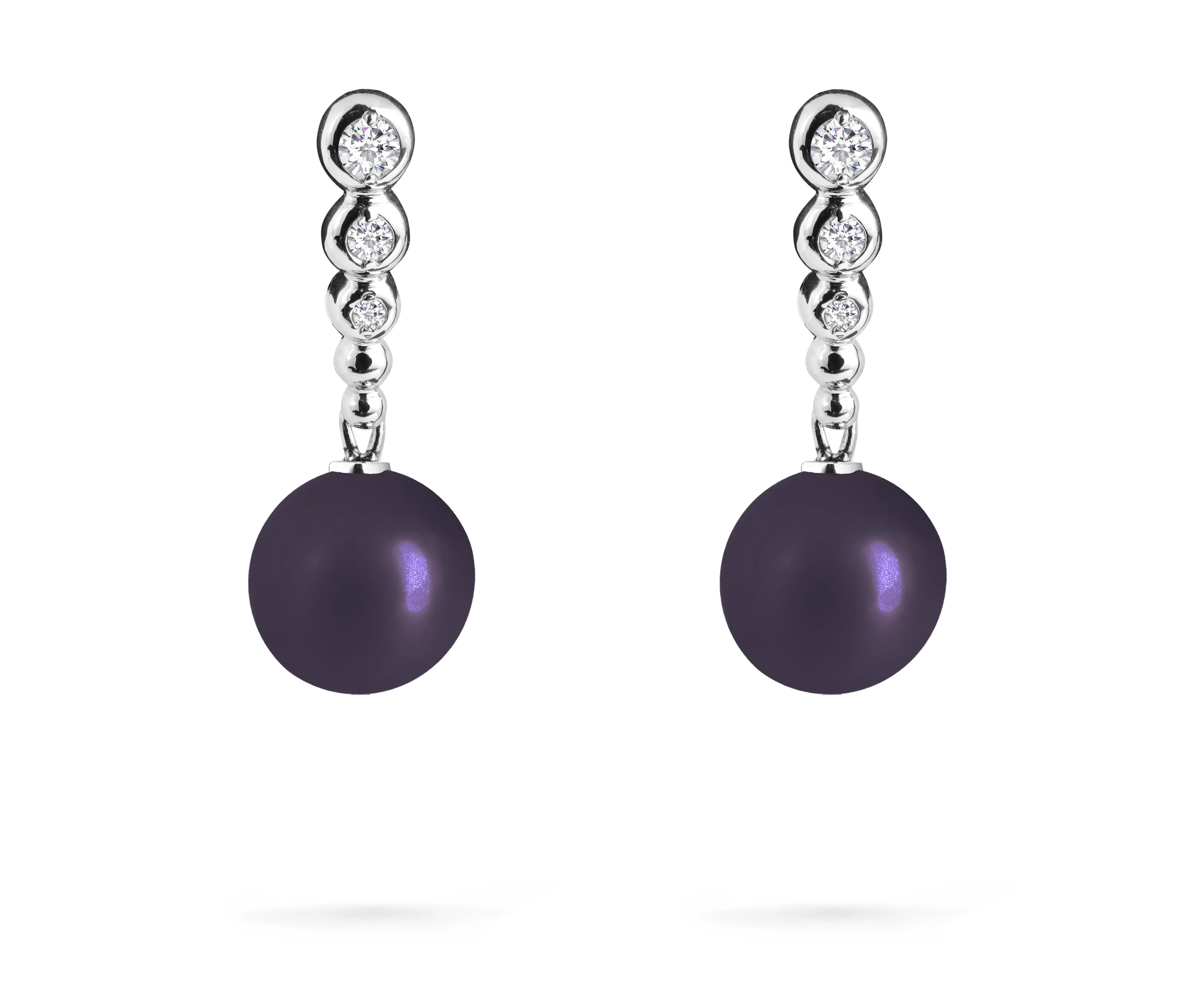 Серьги Бэлла в белом золоте, темным жемчугом шар 8.9мм, с сапфирами