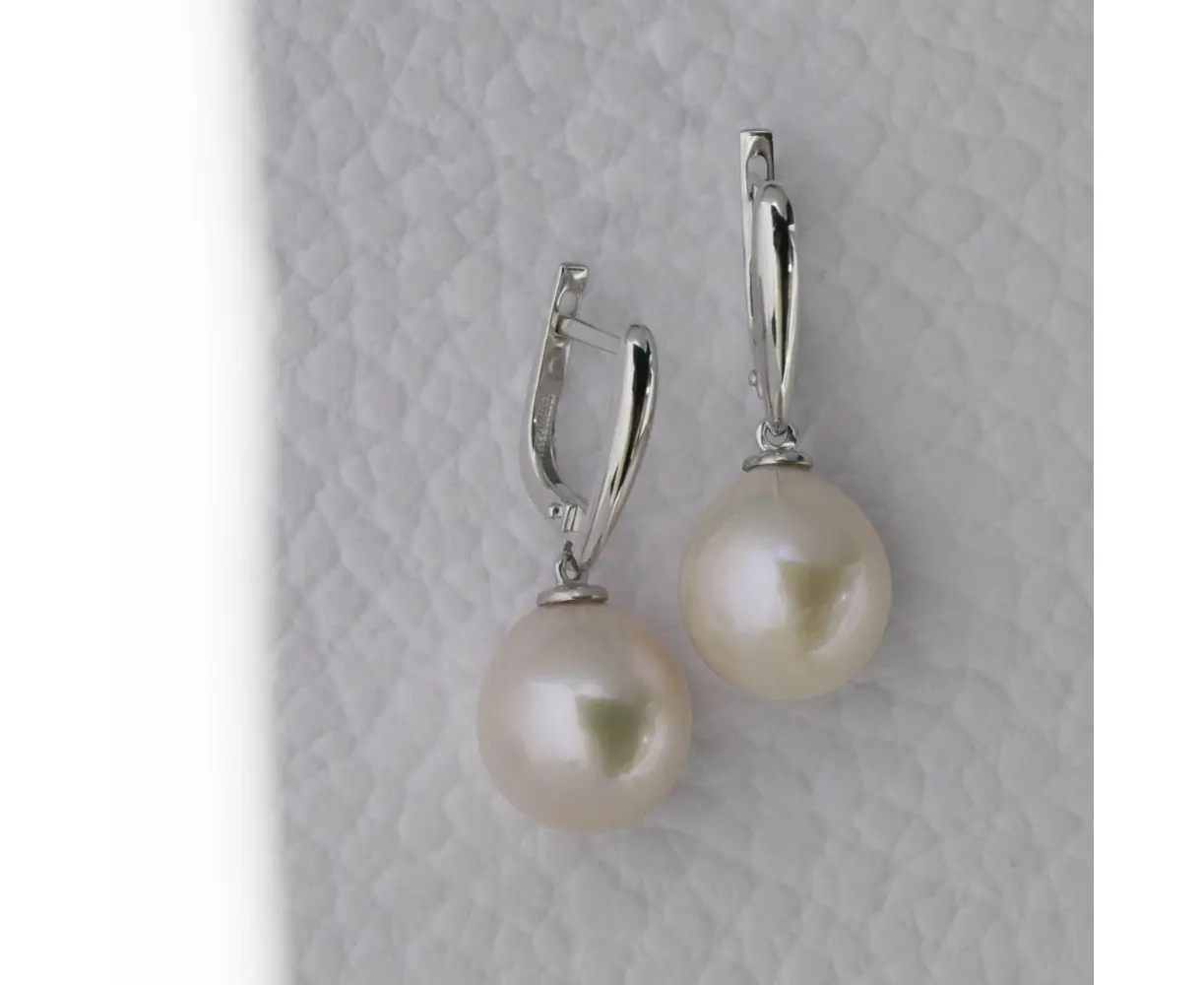 Серьги в белом золоте с пресноводным жемчугом капля 11,4 мм
